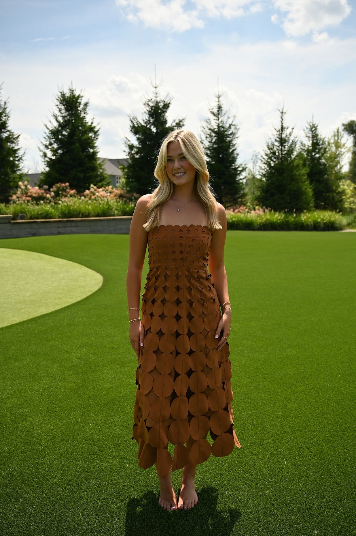 Step into the season with the Obsession Dress, a fall maxi that’s truly one of a kind. Its flowing silhouette moves with effortless grace, while rich autumn tones make it your new go-to for cozy-chic days. Whether you're sipping pumpkin spice lattes or dancing under the crisp fall sky, this dress brings iconic style and playful charm to every moment.