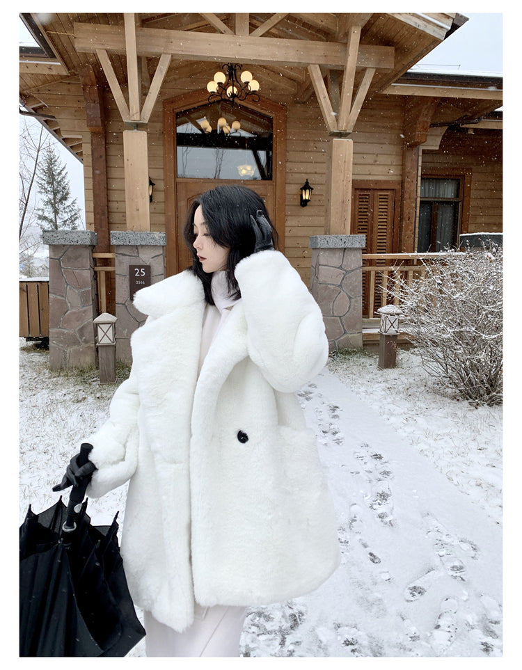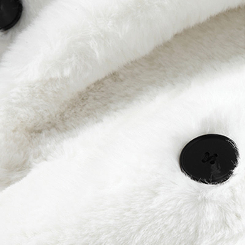 The perfect addition to any winter wardrobe, this faux fur coat will keep you cozy and stylish all season long. Featuring a double-breasted closure and a classic turn-down collar, this stylish coat is a great way to add a touch of luxury to your casual wear.