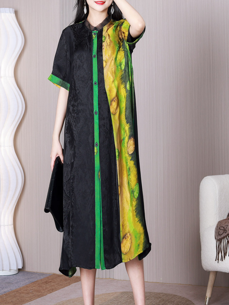 Close Your Eyes Stand Collar Pullover A-line Dress