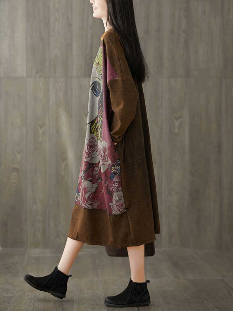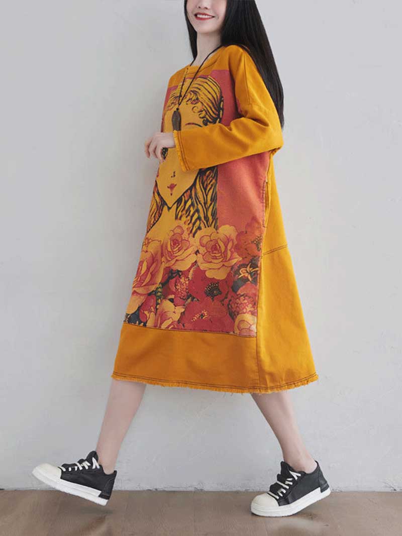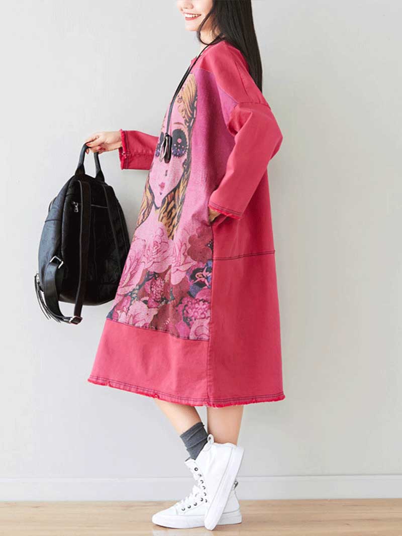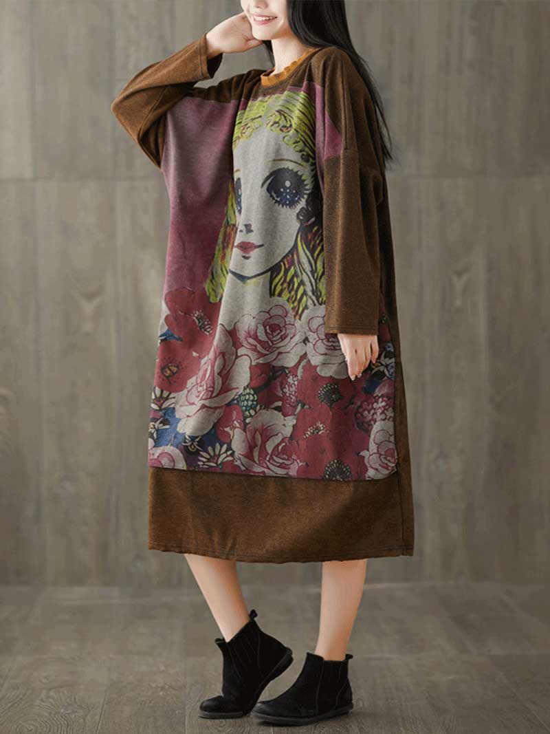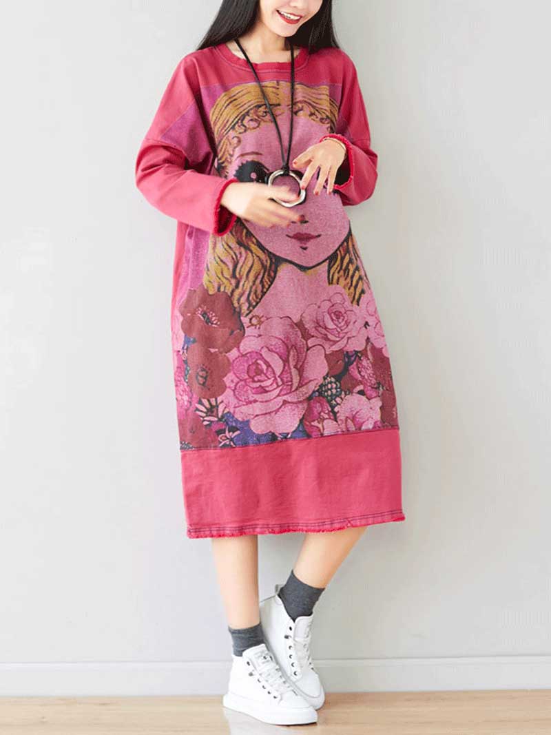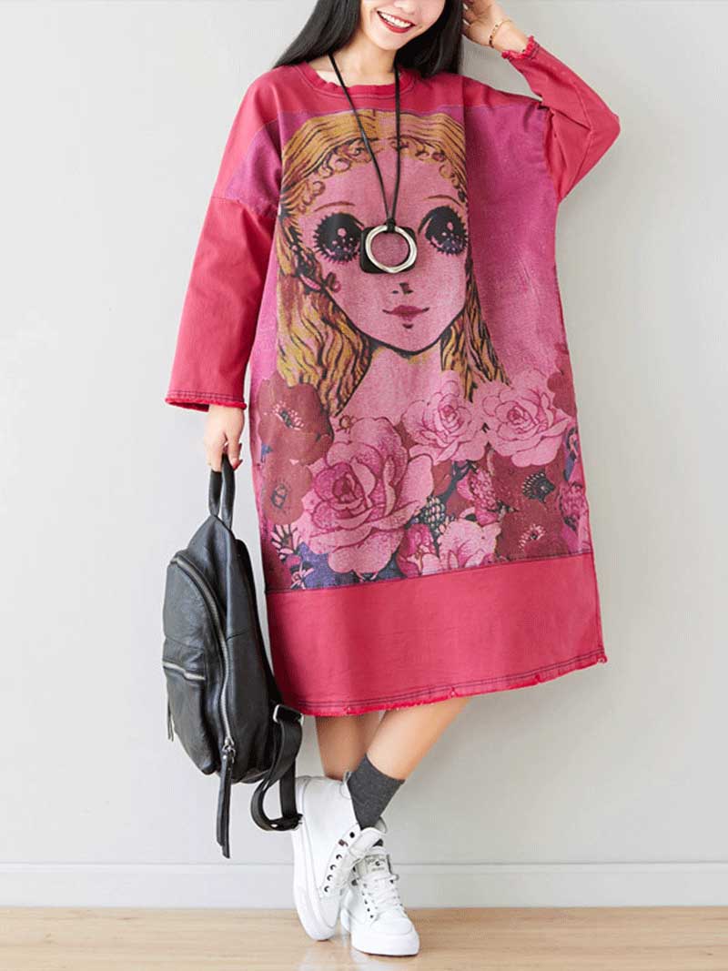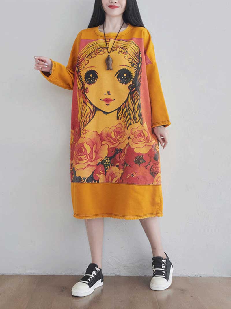Give Me a Memory Round Neck Cartoon Sweater Midi Dress