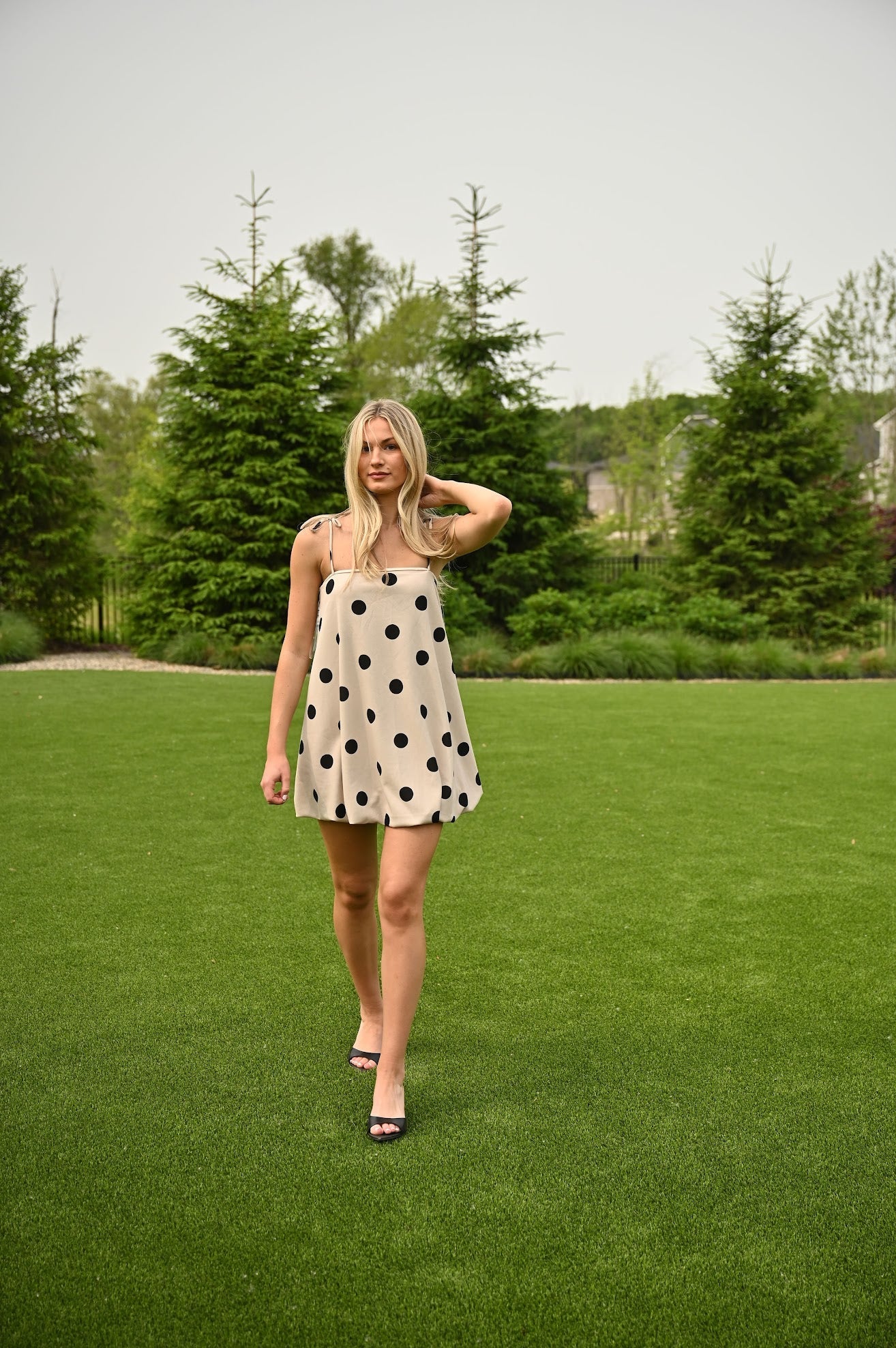 This HP Polka Dress features flirty shoulder ties and a charming all-over polka dot print. With its mini length and bubble hem, this dress is perfect for any occasion. The shoulder bow tie detail adds a touch of elegance to this playful piece.
