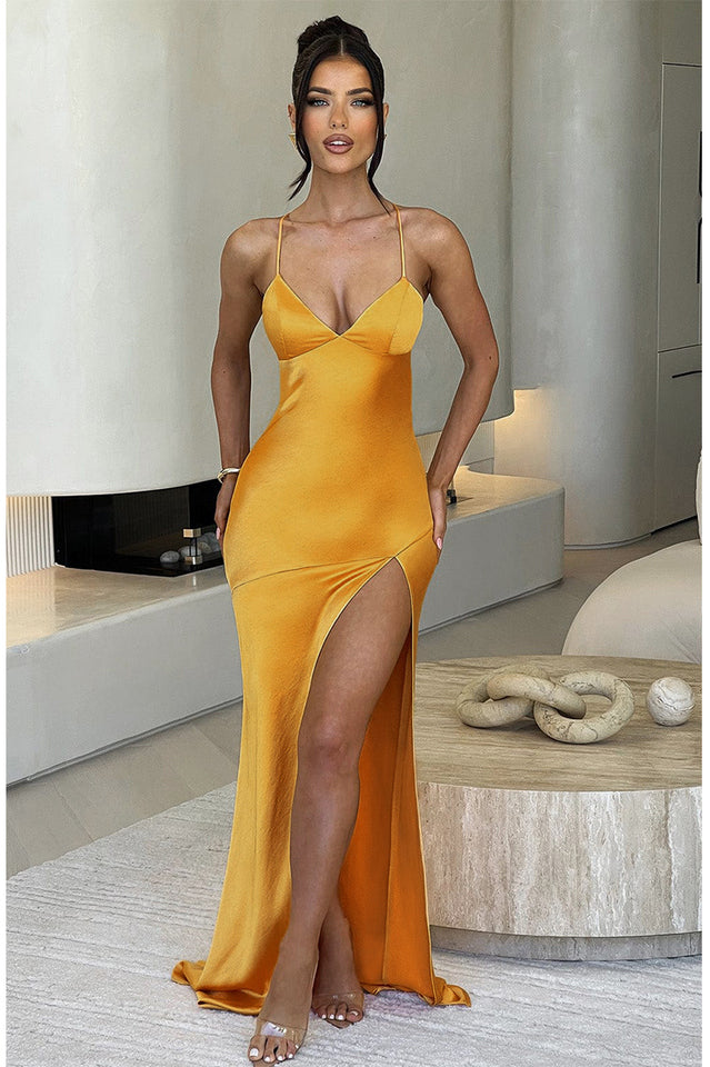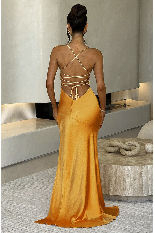If you’re looking for a super soft, romantic silhouette that skims over the body and enhances your figure, meet the Isobel maxi. Made from our silky soft satin with a bias cut, Isobel features a plunge neck, super low back with tie straps and a thigh high split.