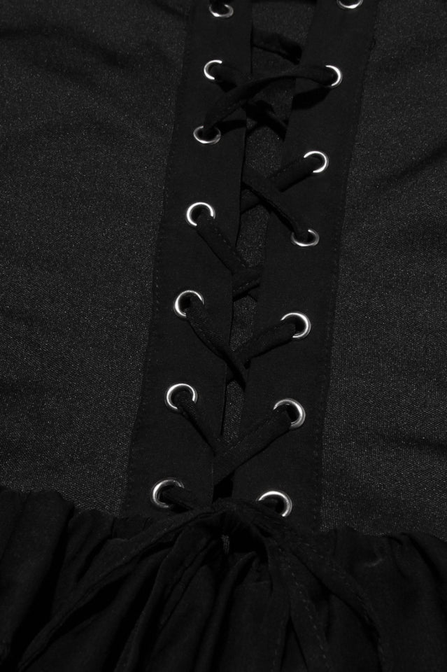 Crafted from a stretch fabrication, Pippa has a straight, strapless neckline that is detailed with silver eyelets to add edge to the mini. She has a body-con fit at the waist that flatters your figure and a lace up closure at the back to create your desired fit. Pippa is complete with a tiered ruffle hemline that sits at a mini length.