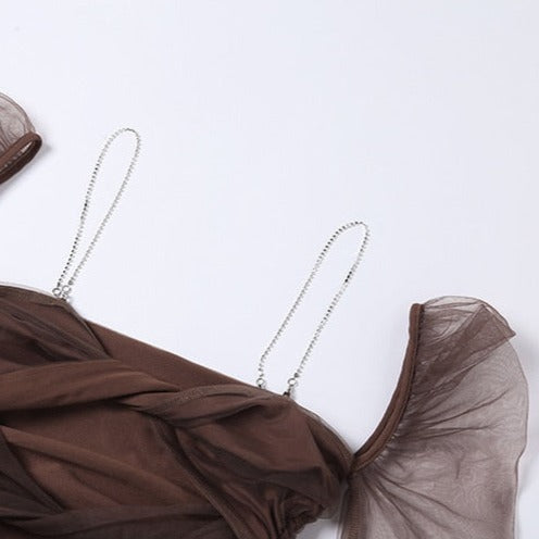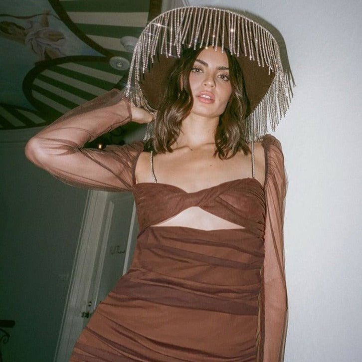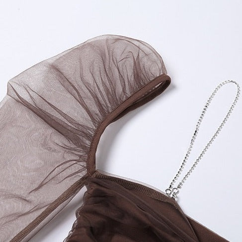 TAKAKO AUBURN Mesh Long Sleeve Mini Dress