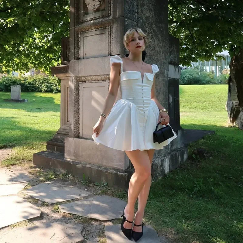 Effortlessly turn back time with our stunning mini dress. Made of polyester, this solid dress is both stylish and comfortable. Complete with a convenient zipper, it's perfect for any occasion. Make a statement and stand out in this must-have dress!