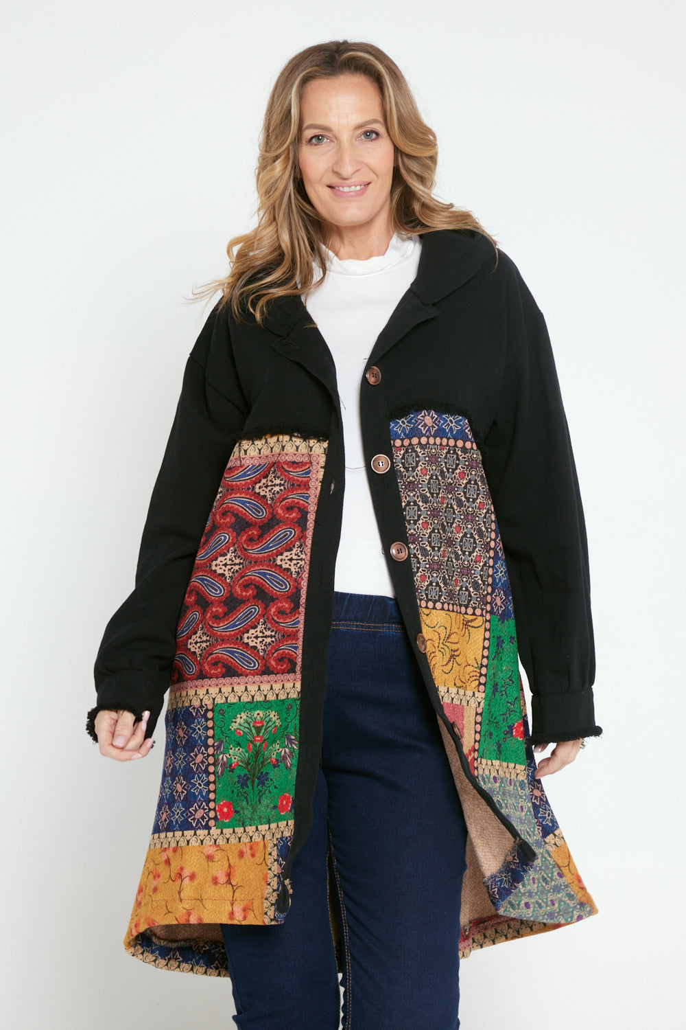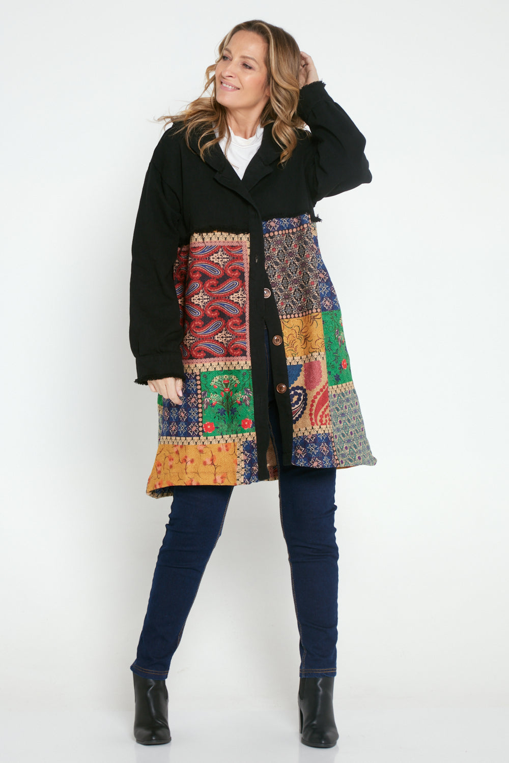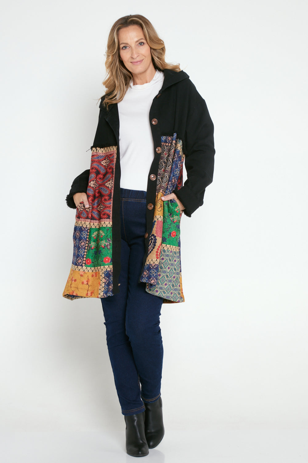 Maggie Chenille Knit & Canvas Coat - Mosaic Patchwork