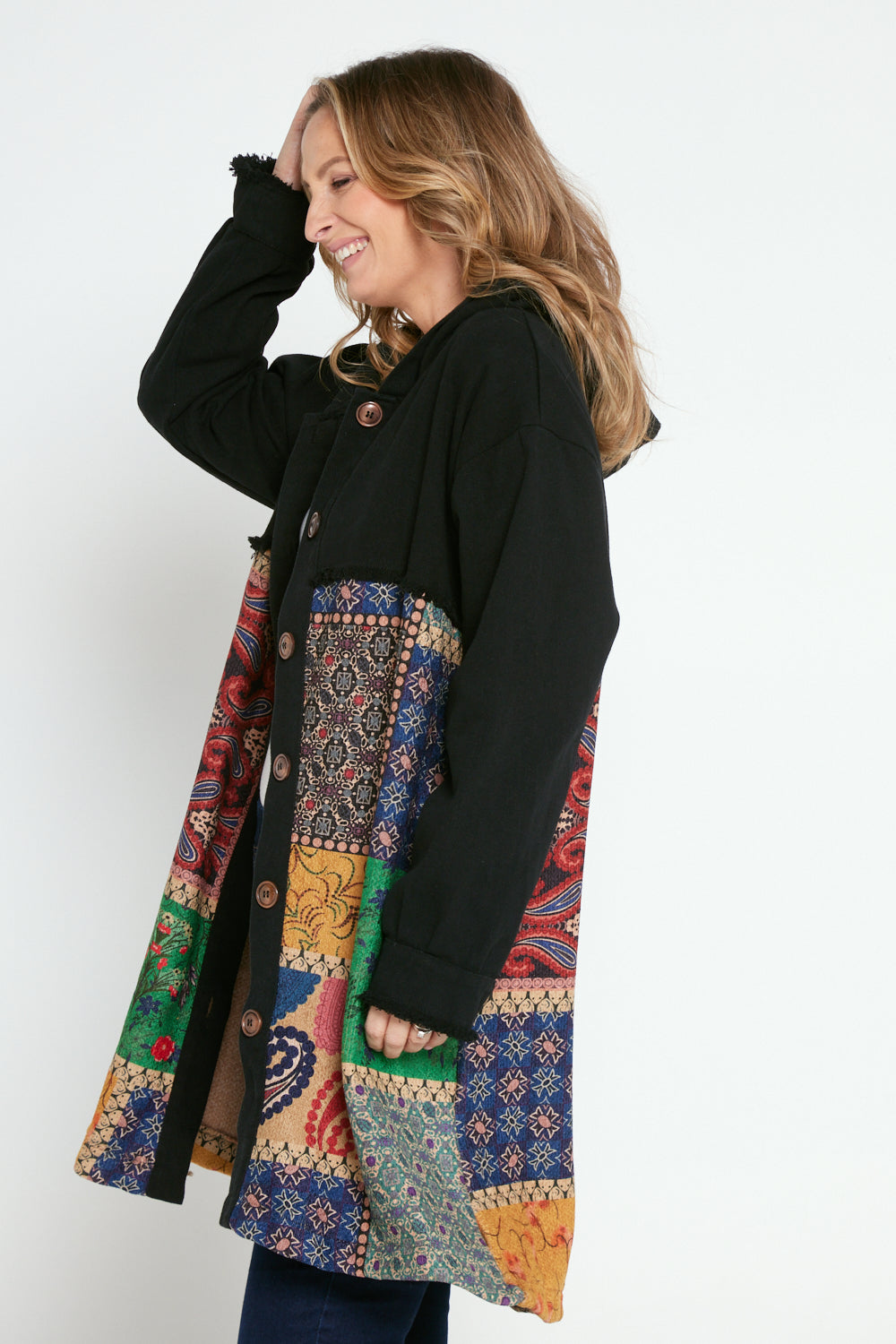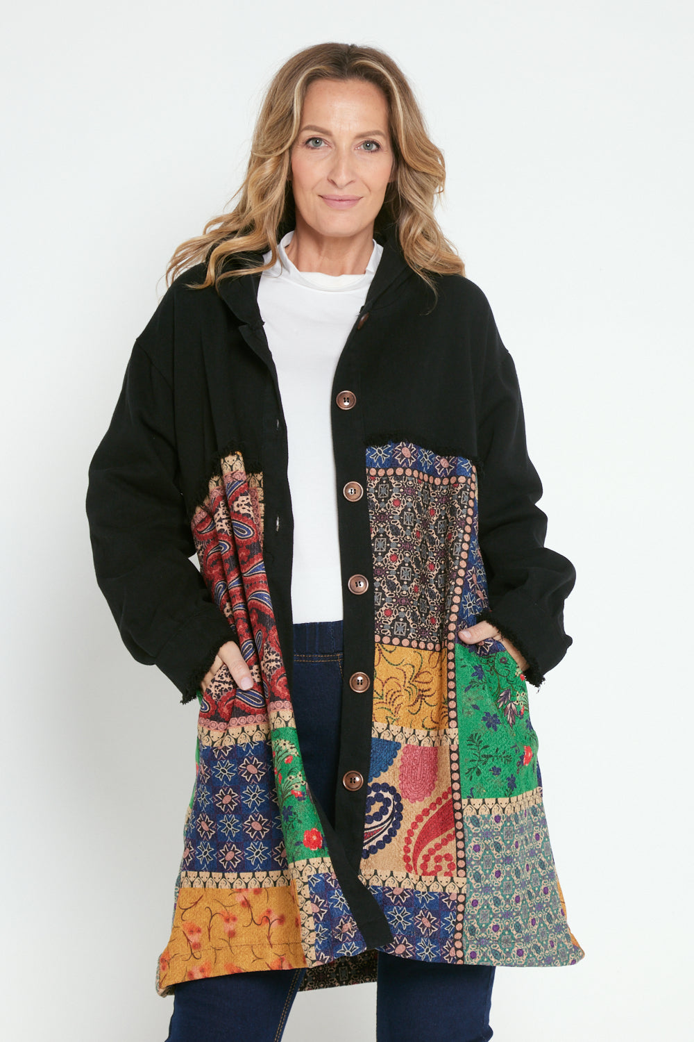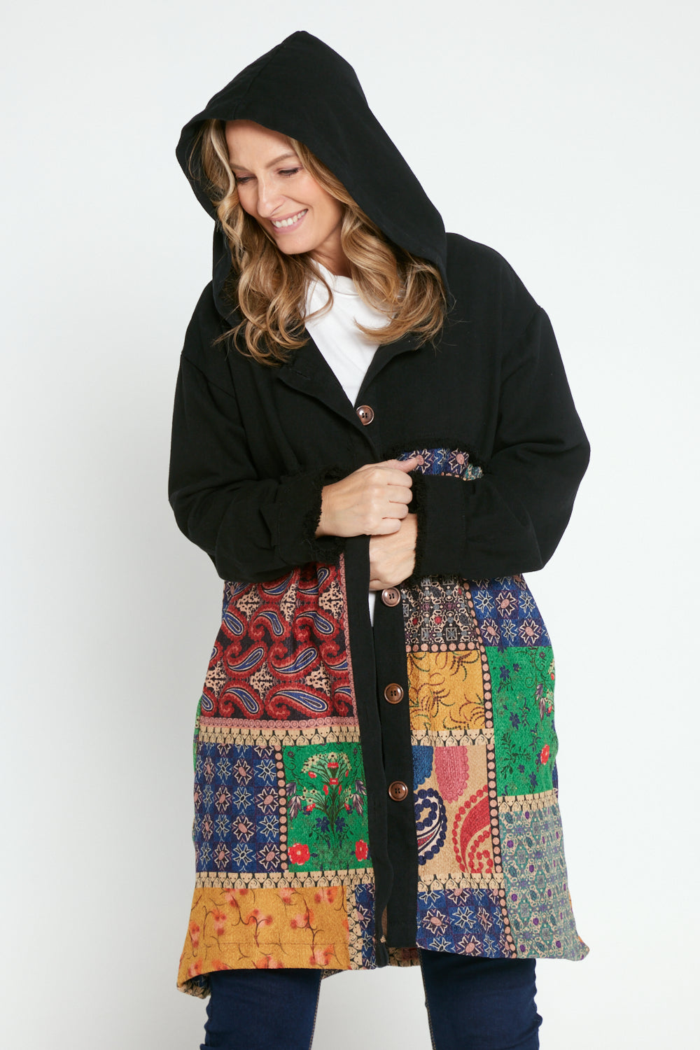 Maggie Chenille Knit & Canvas Coat - Mosaic Patchwork