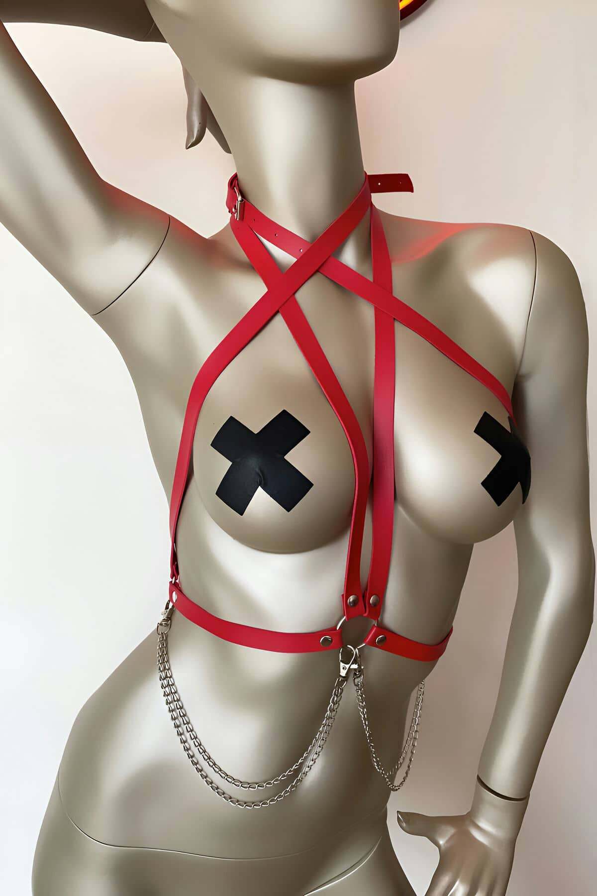 Leather Accessory on T-shirt, Stylish Leather Harness on Shirt