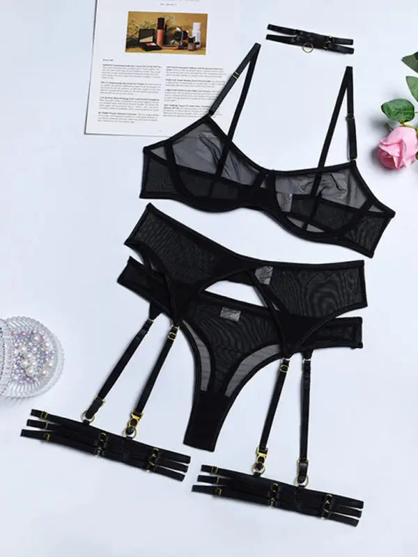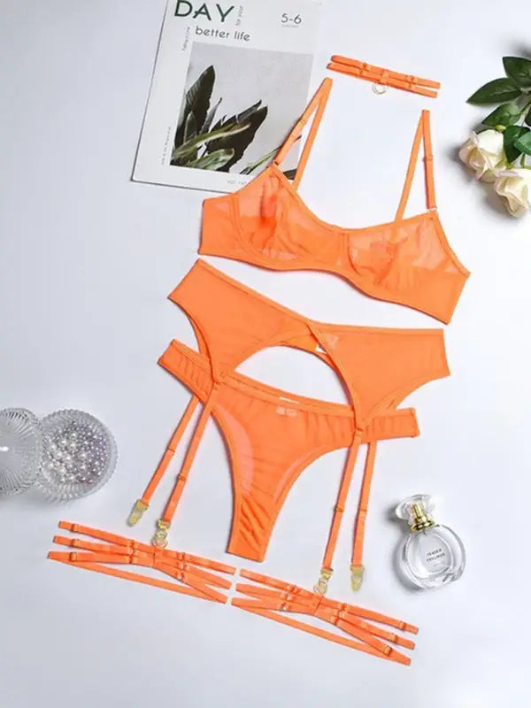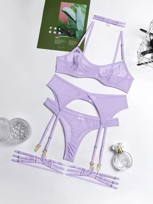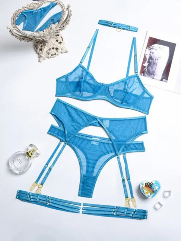 The new fashionable and sexy lingerie mesh is comfortable and slimming and has a steel ring four-piece set. The simple design makes the boring season colorful and interesting. A variety of matching options make you confident and beautiful.