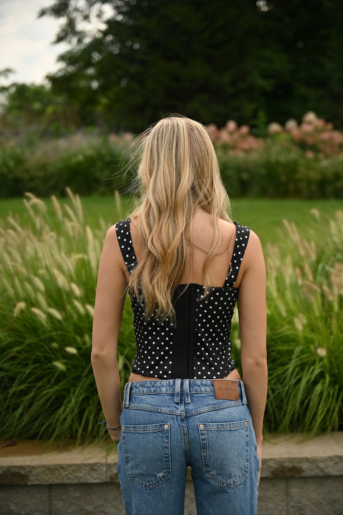Turn heads effortlessly with the Caught You Staring Top, a playful polka dot corset that hugs your curves and adds a flirty touch to any outfit. Perfect for days when you want to feel confident and fun, this top pairs beautifully with jeans or skirts for a look that’s both charming and bold.