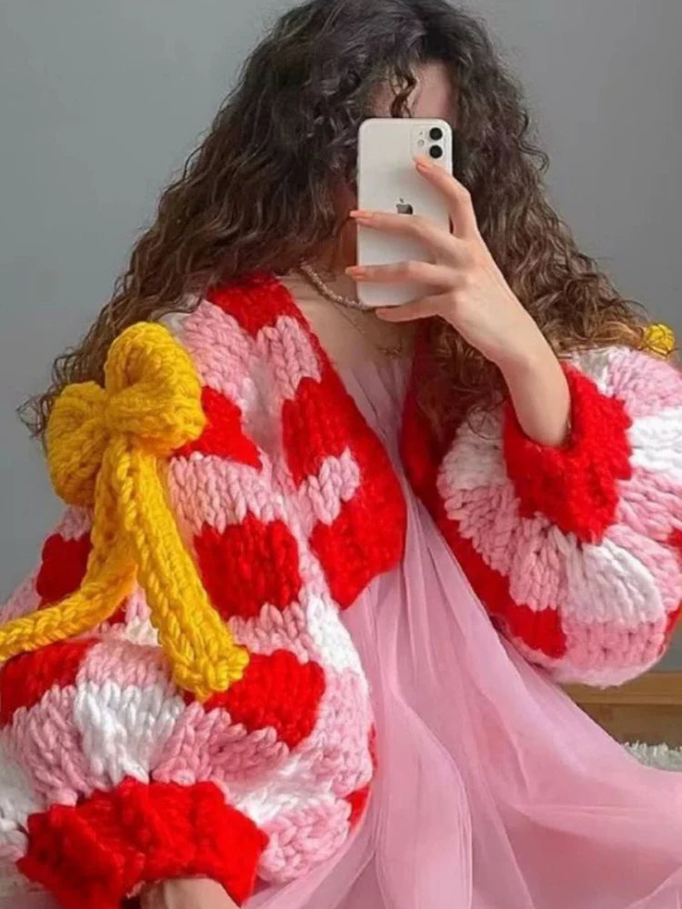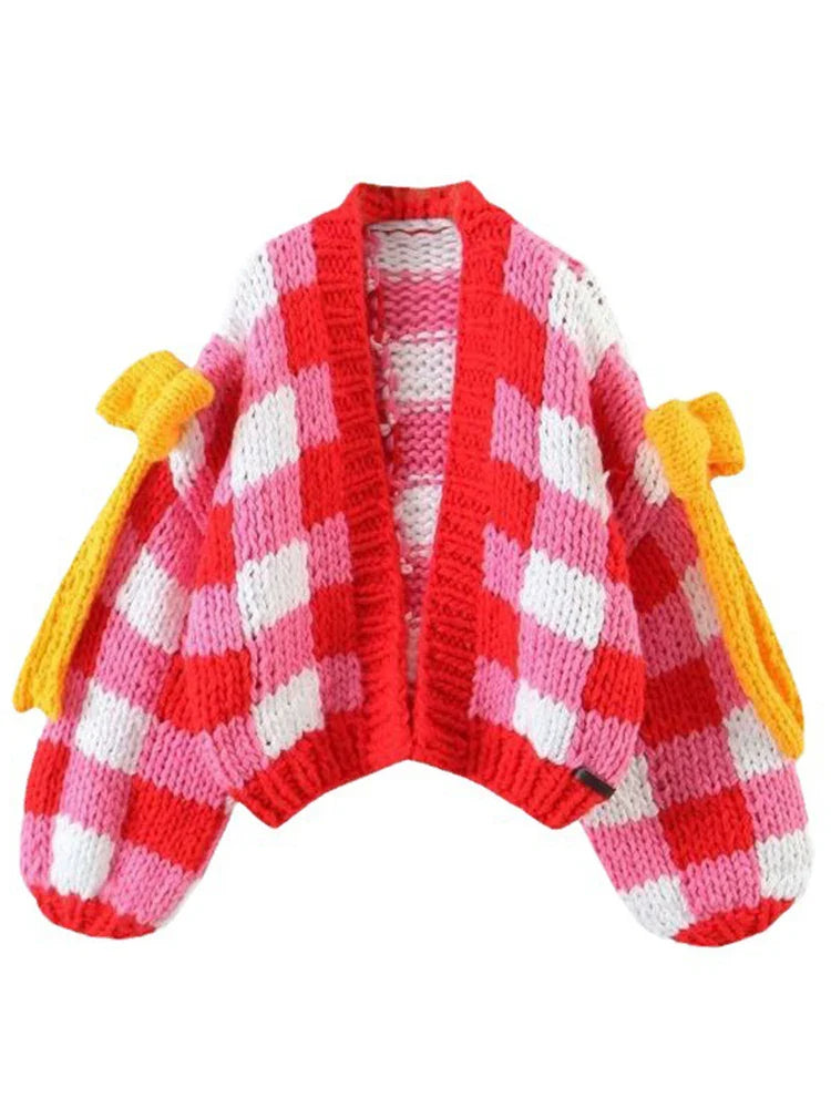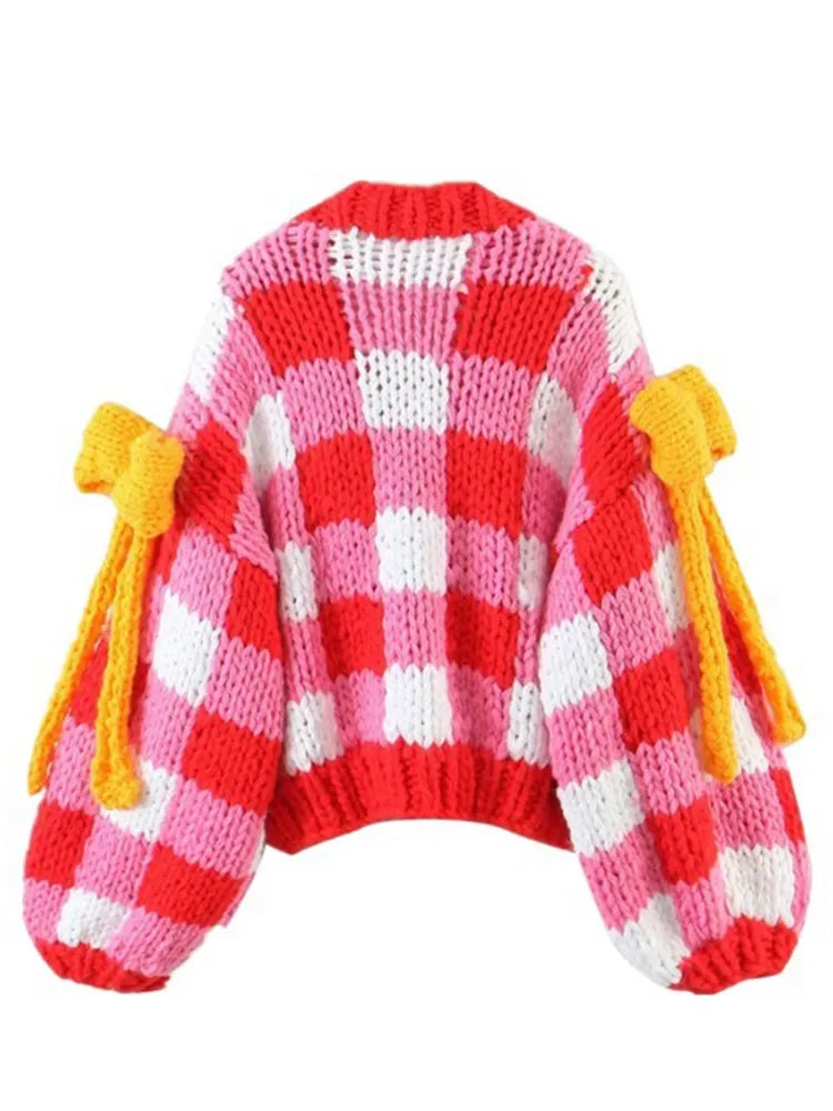 This Another Sunny Day Sweater is an ideal lightweight addition to your wardrobe. Featuring a classic plaid pattern, loose fit design, full sleeve length, bow decoration, and high quality polyester knitted material - this stylish piece is sure to become a statement piece of your collection.