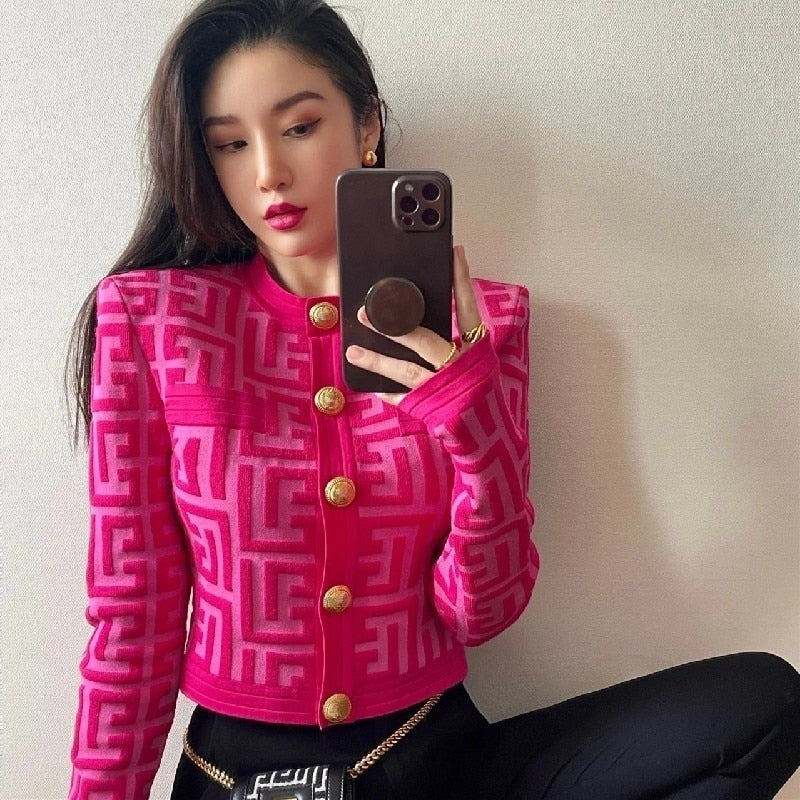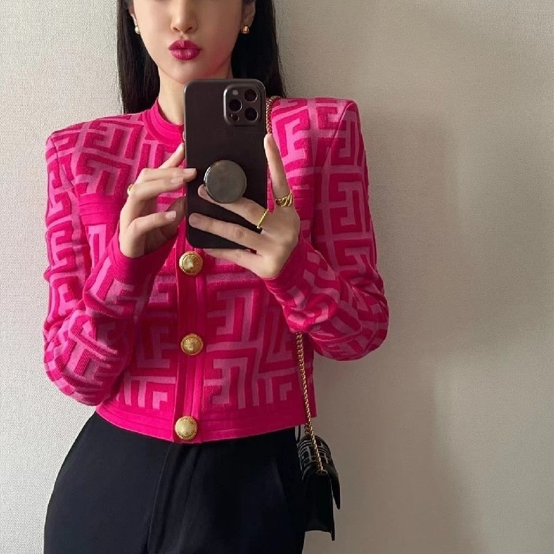 This versatile cardigan is made from acrylic with letter detail and button closure. It's the perfect choice for layering and keeping warm on chilly days. Its lightweight and delicate design offers a classic and timeless look.
