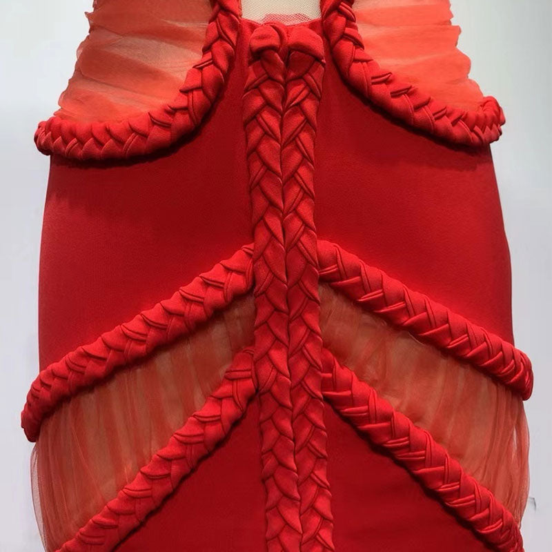 Sexy Criss Cross Braided Mesh CutOut Front Slit Maxi Evening Dress - Red