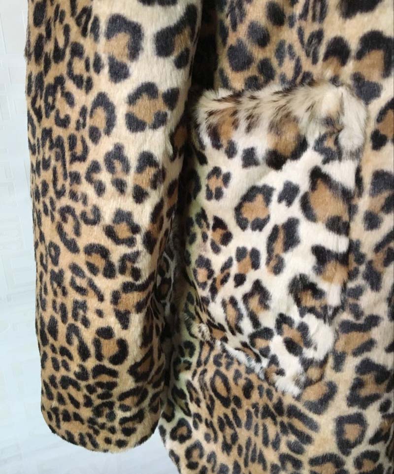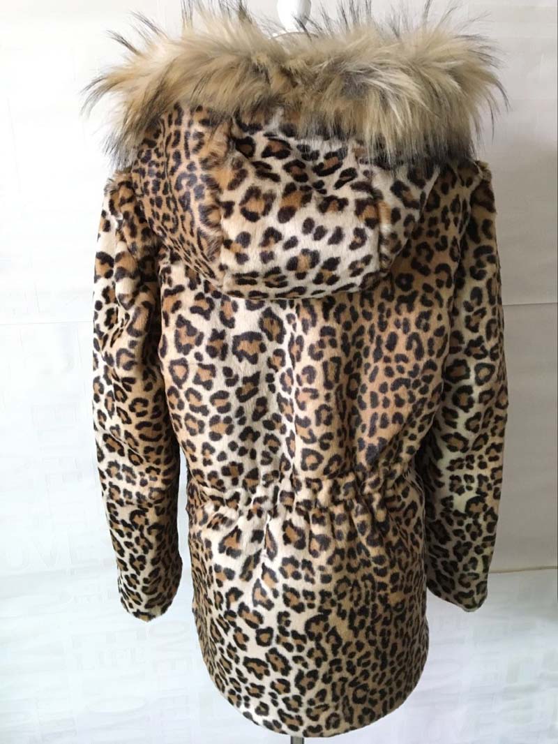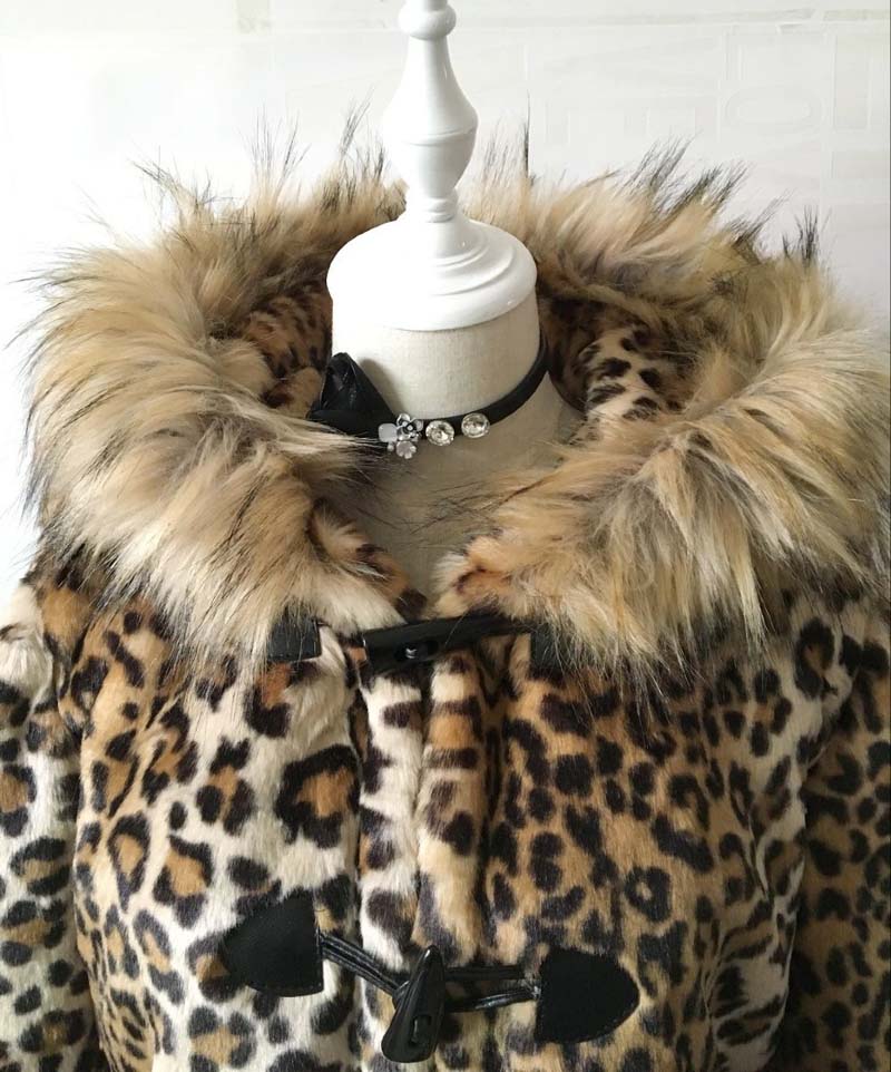 Leopard Faux Fur Coat With Hooded, Pocket, And Single Breasted Closure Type