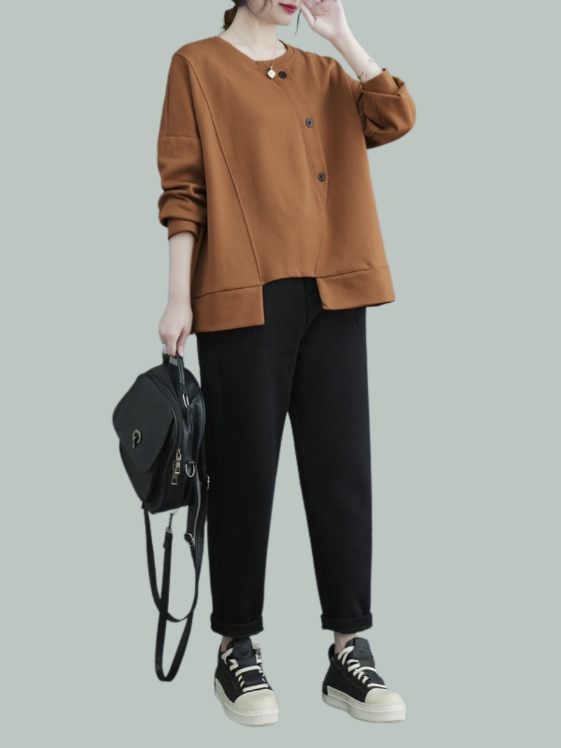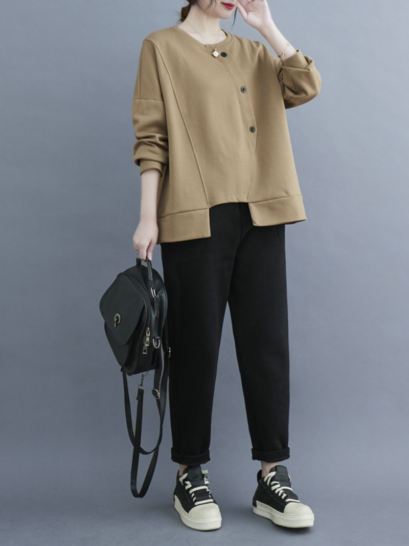 Female Casual Winter Soild Color Long-Sleeved Button Sweater Top