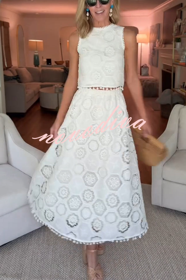 Capri Bloom Skirt – Embroidered Lace Tassel Midi