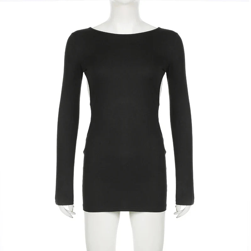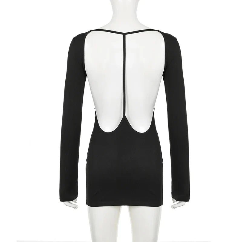 Indulge in the playful elegance of our mini dress! Made of polyester and spandex, this solid-colored dress is both comfortable and stylish. Its mini length and backless design create a seductive look that will make you feel like a queen. Perfect for a night out.