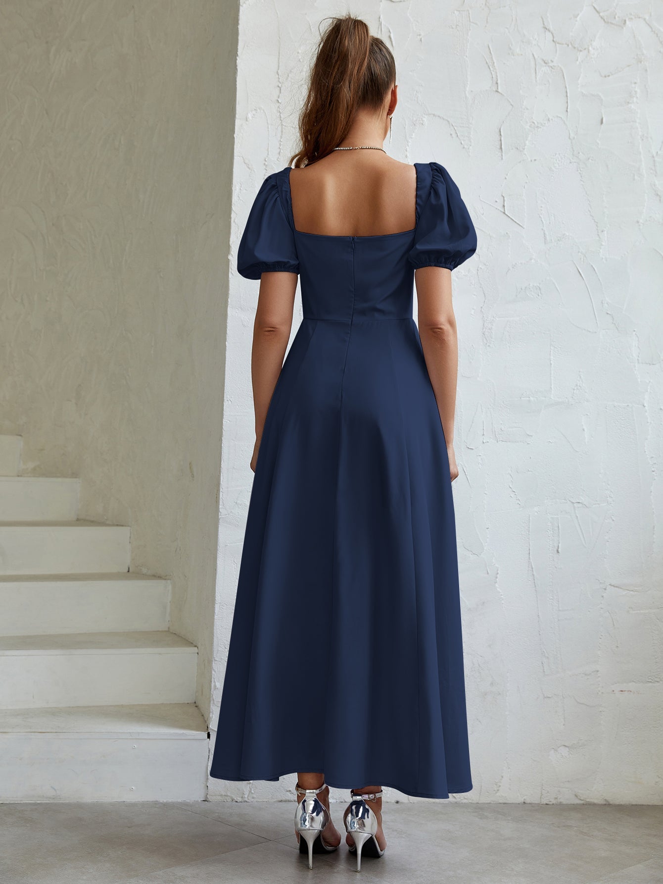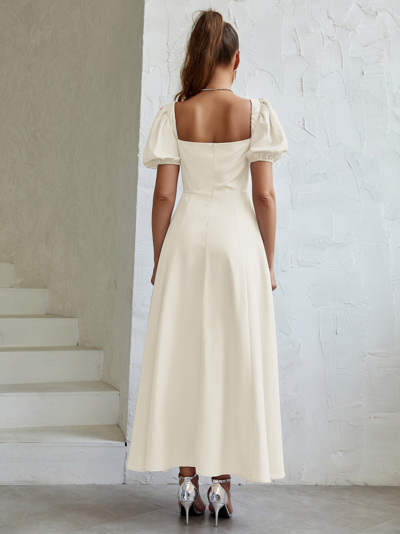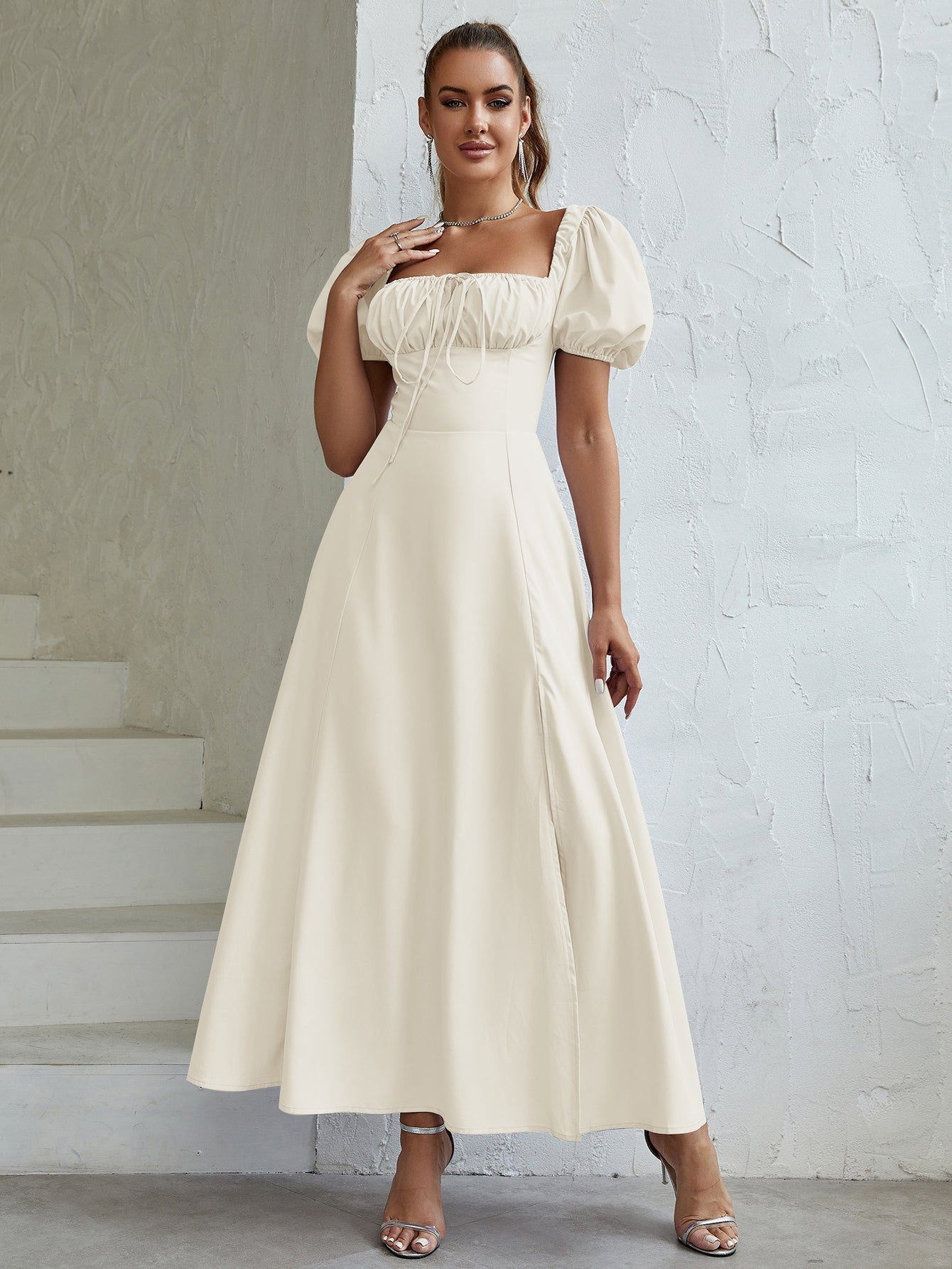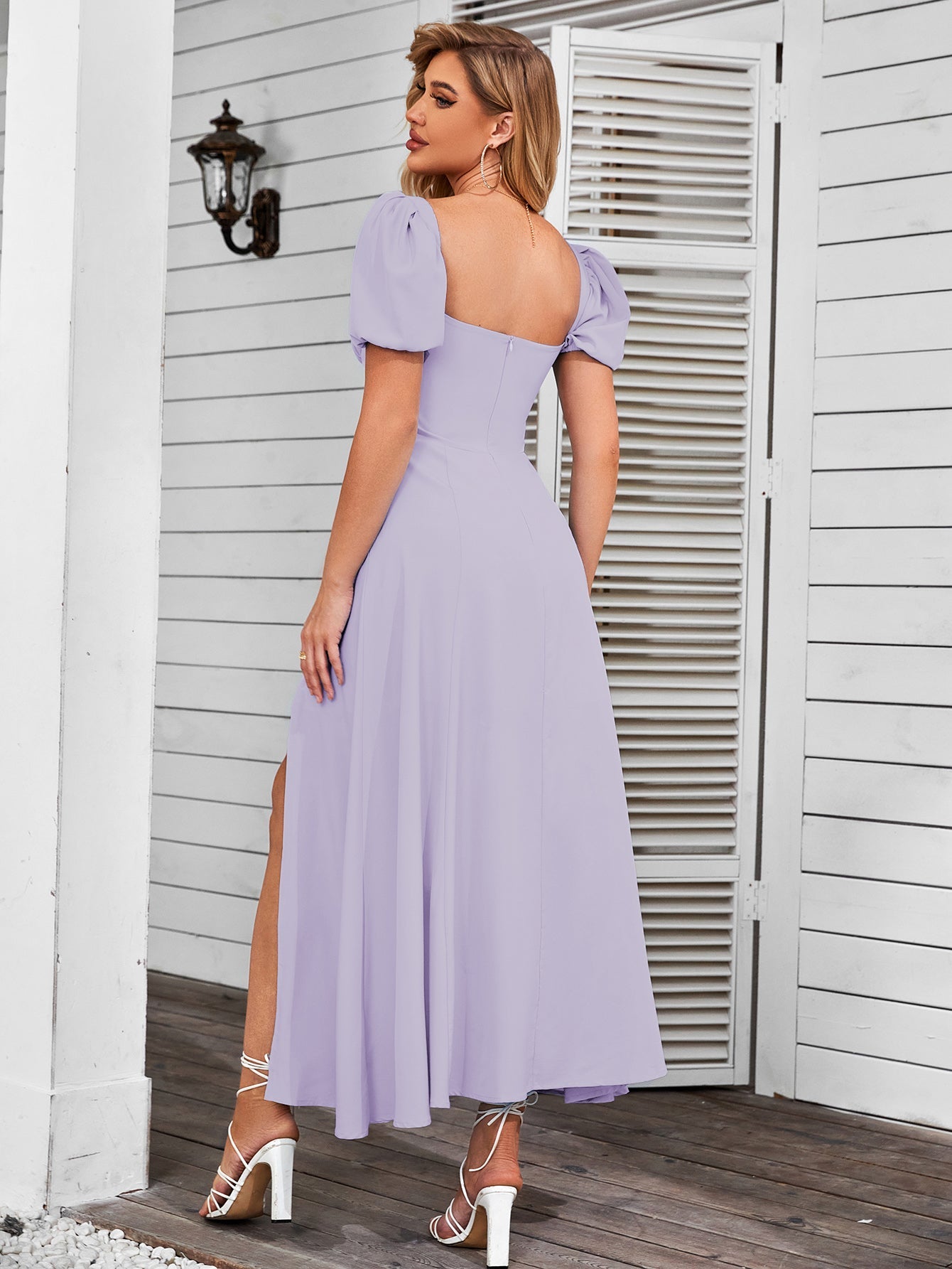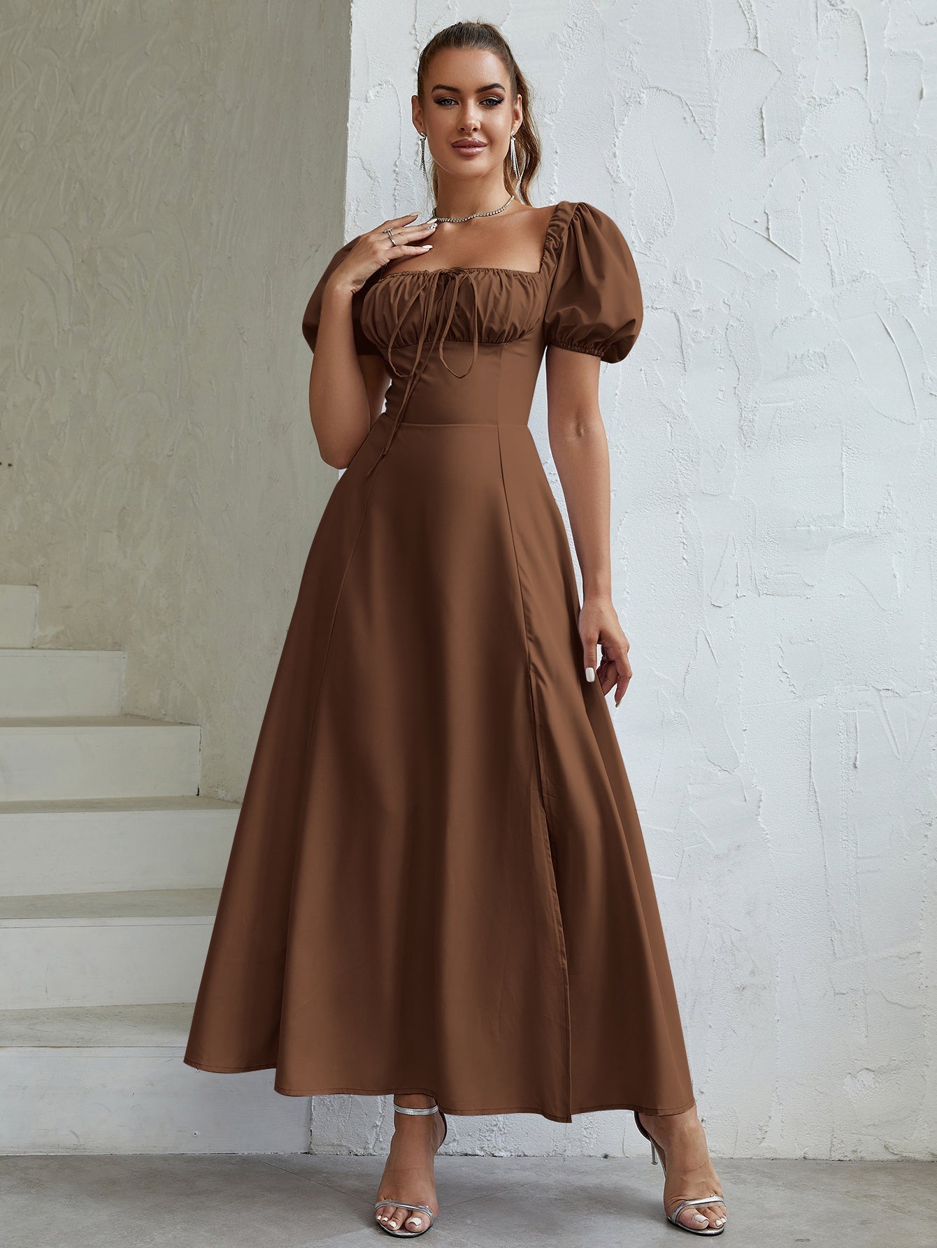 Puff Sleeve Tie Front Off Shoulder Slit Thigh Dress