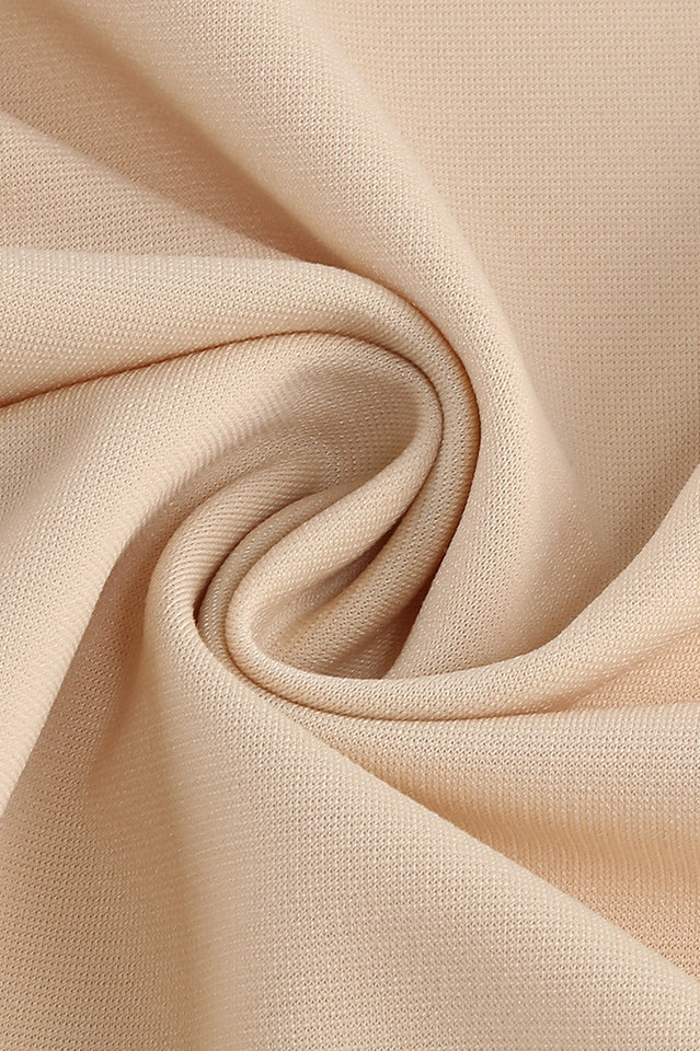 Ultra chic and easy to wear, 'Ruby' is crafted from a delicate ruched Ponte De Roma in a delightful champagne. It features a bustier cut top, and a bodycon ruched fit to highlight your curves. The internal layer is cut from our special stretchy Ponte that sculpts your body like shapewear, giving a perfect smooth silhouette. The delicate spaghetti straps with adds a collar to make it unique. Wear yours with gold accessories.