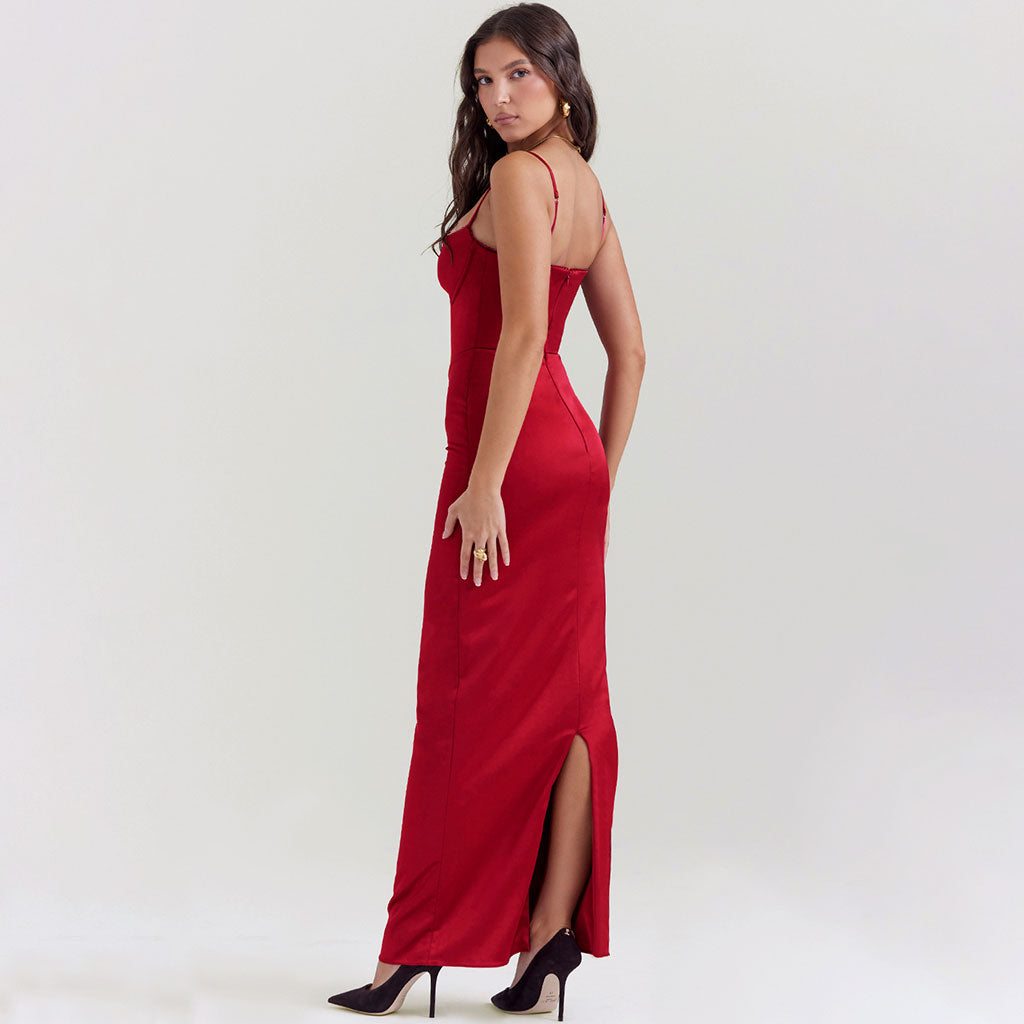 Sexy Scalloped Sweetheart Neck High Waist Sheen Satin Corset Sleeveless Maxi Dress