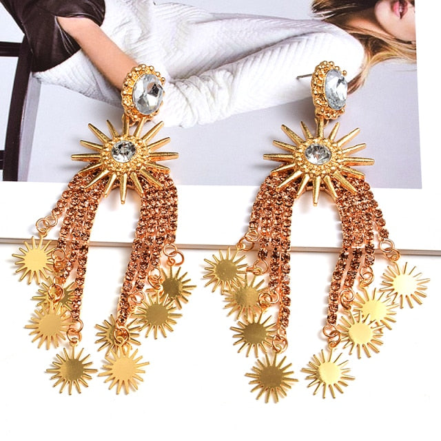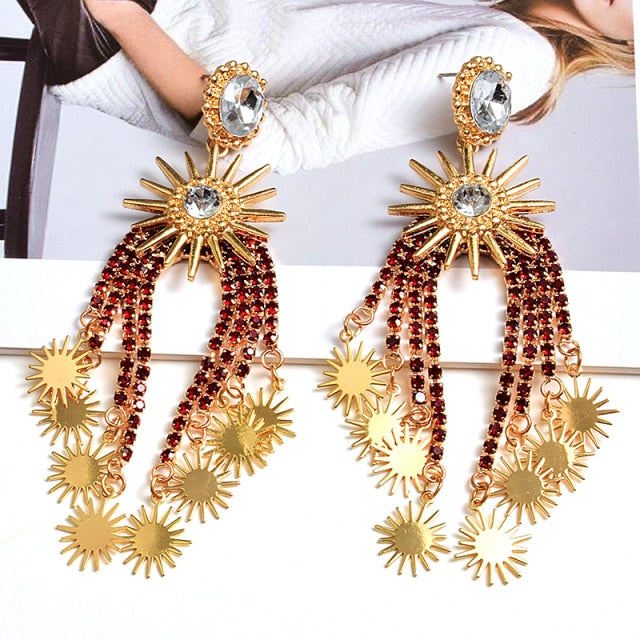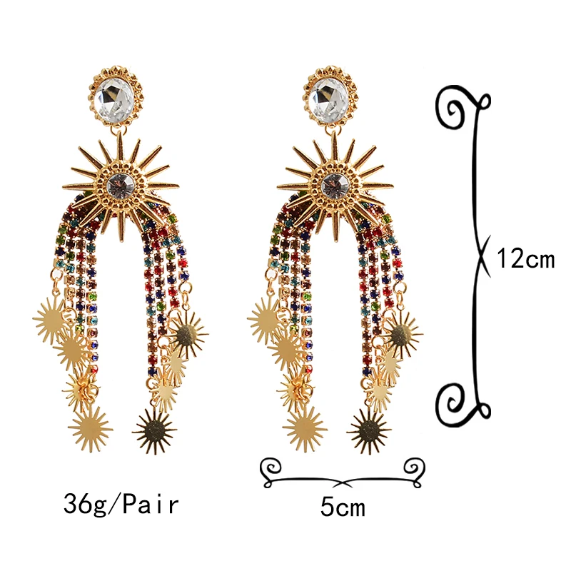 Star Shaped Alloy Metal Drop Dangle Earrings with Colorful Rhinestones