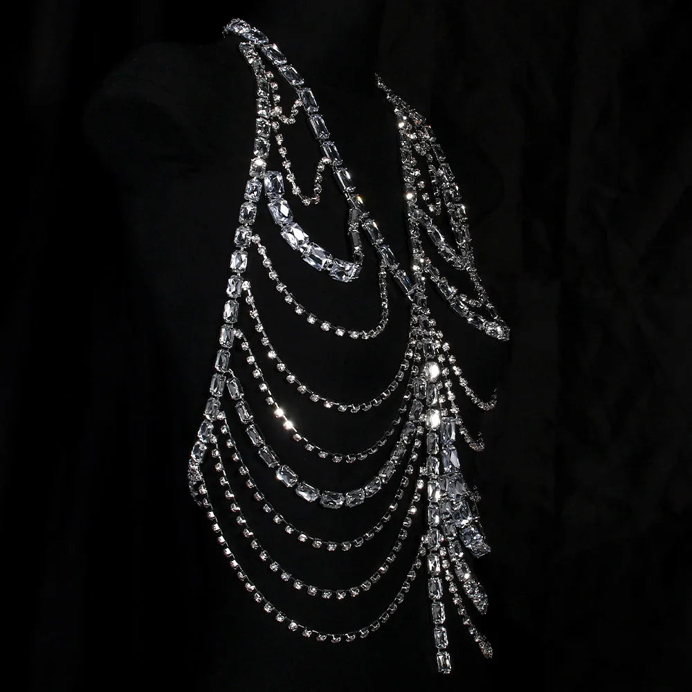 Unleash your inner goddess with our Silken Promises Body Jewelry. Crafted with sparkling rhinestones and durable copper, this geometric design will elevate any outfit. Make a statement and exude confidence with every move. Dare to be bold with Silken Promises!