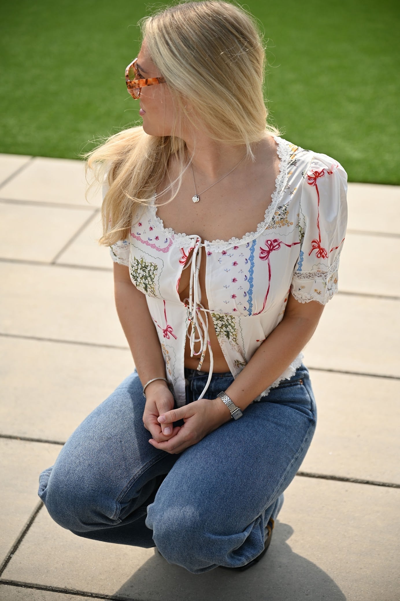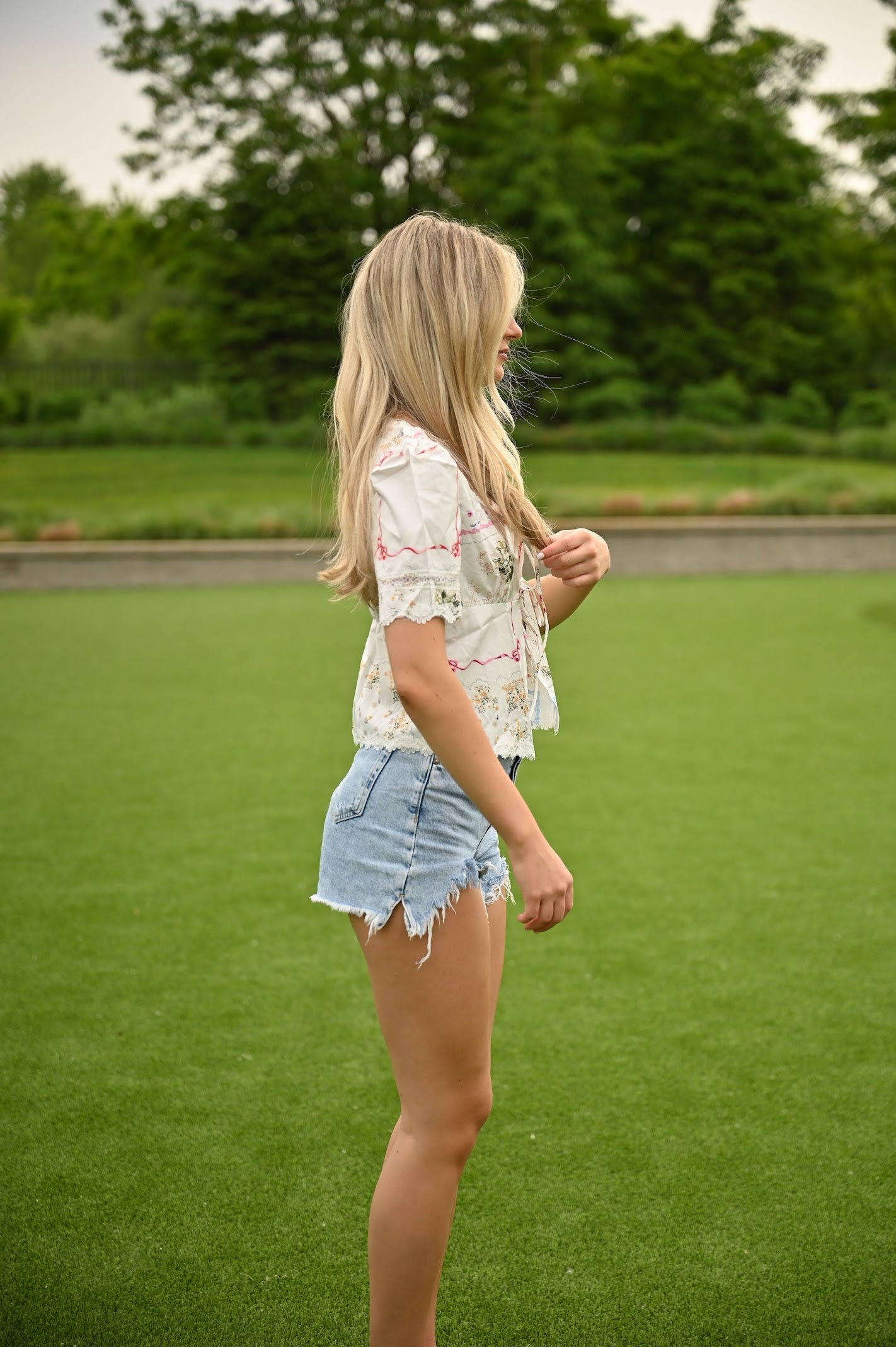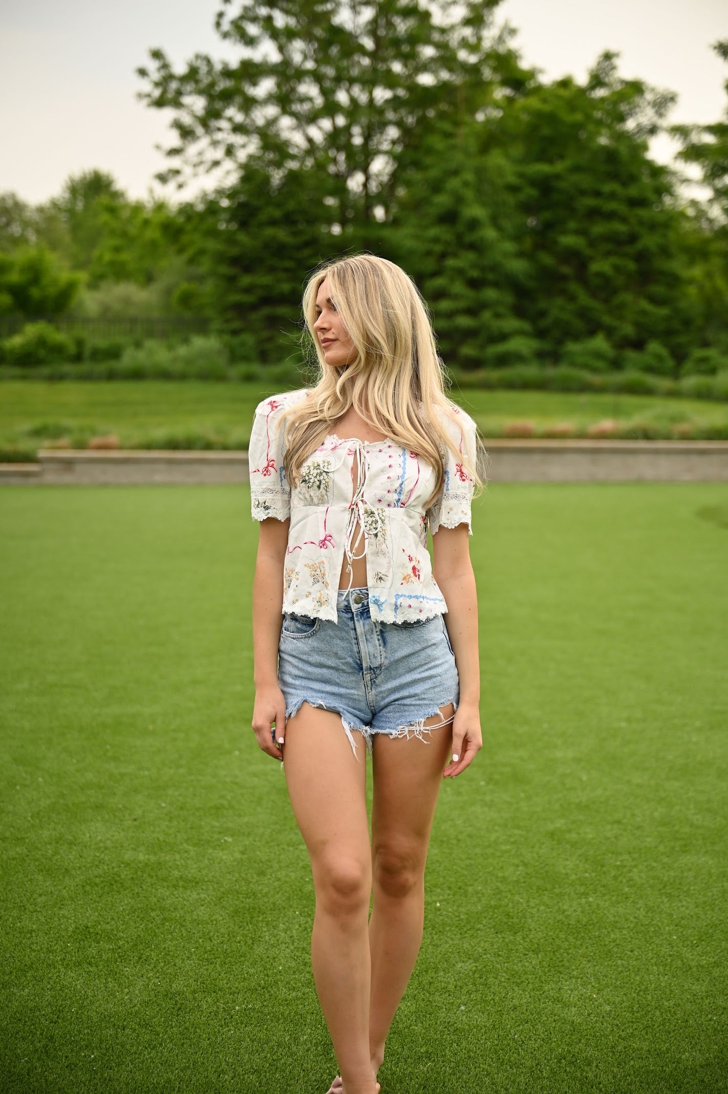 Introducing the Hydrangea Top, a fresh and fun addition to your wardrobe. This short sleeve top features a unique open middle design, adding a playful touch to any outfit. Stay stylish and cool with this quirky top.