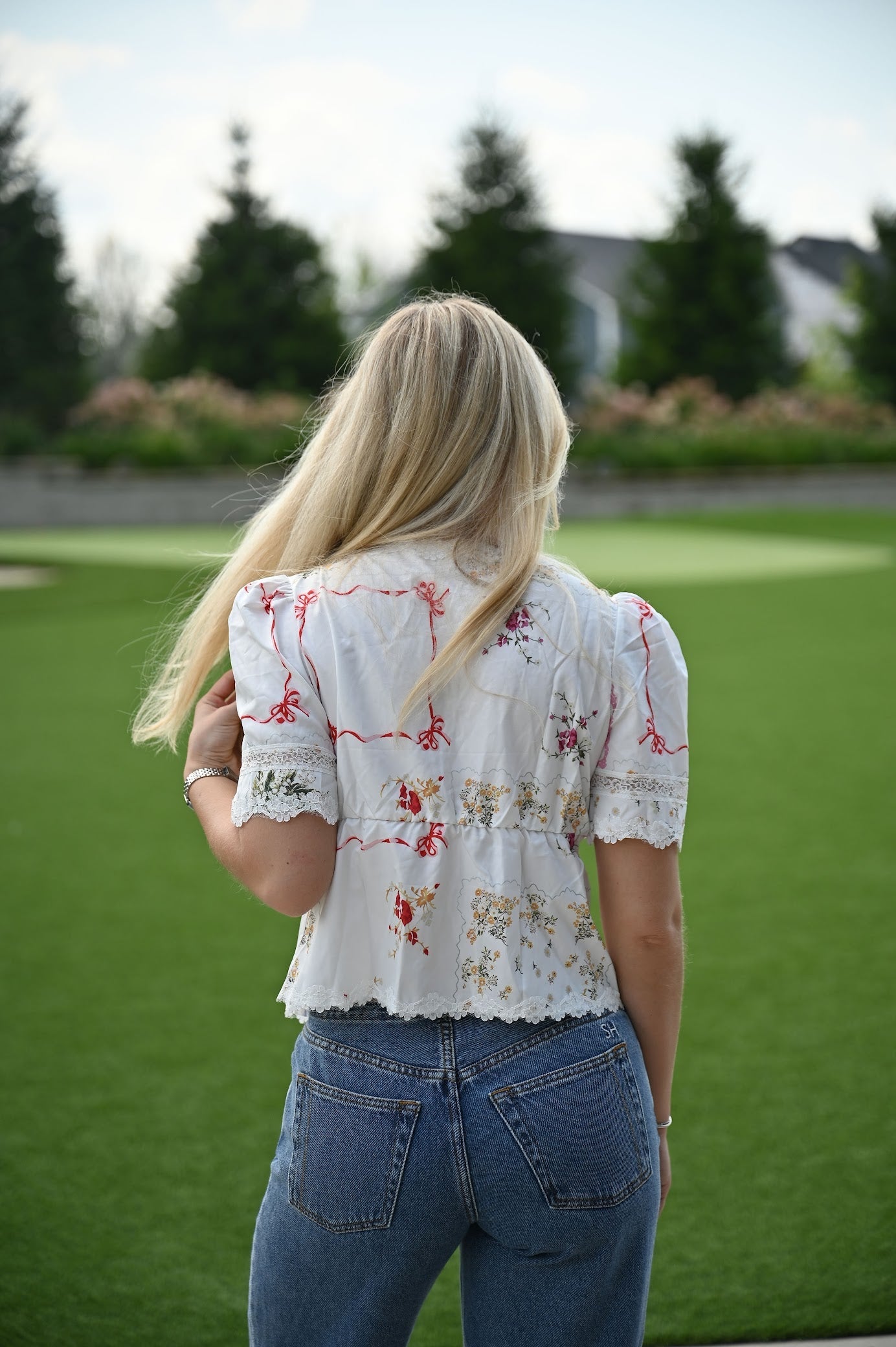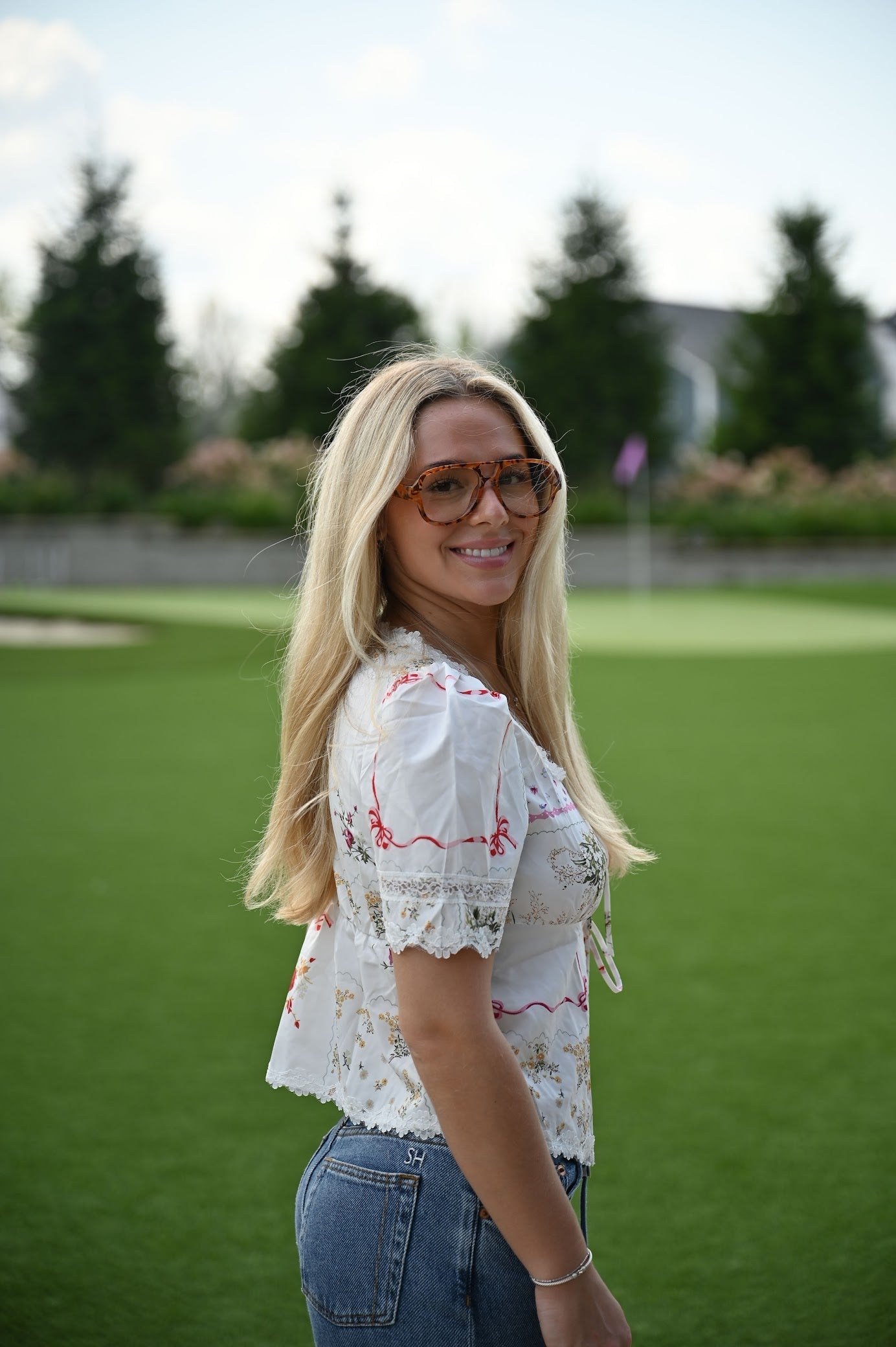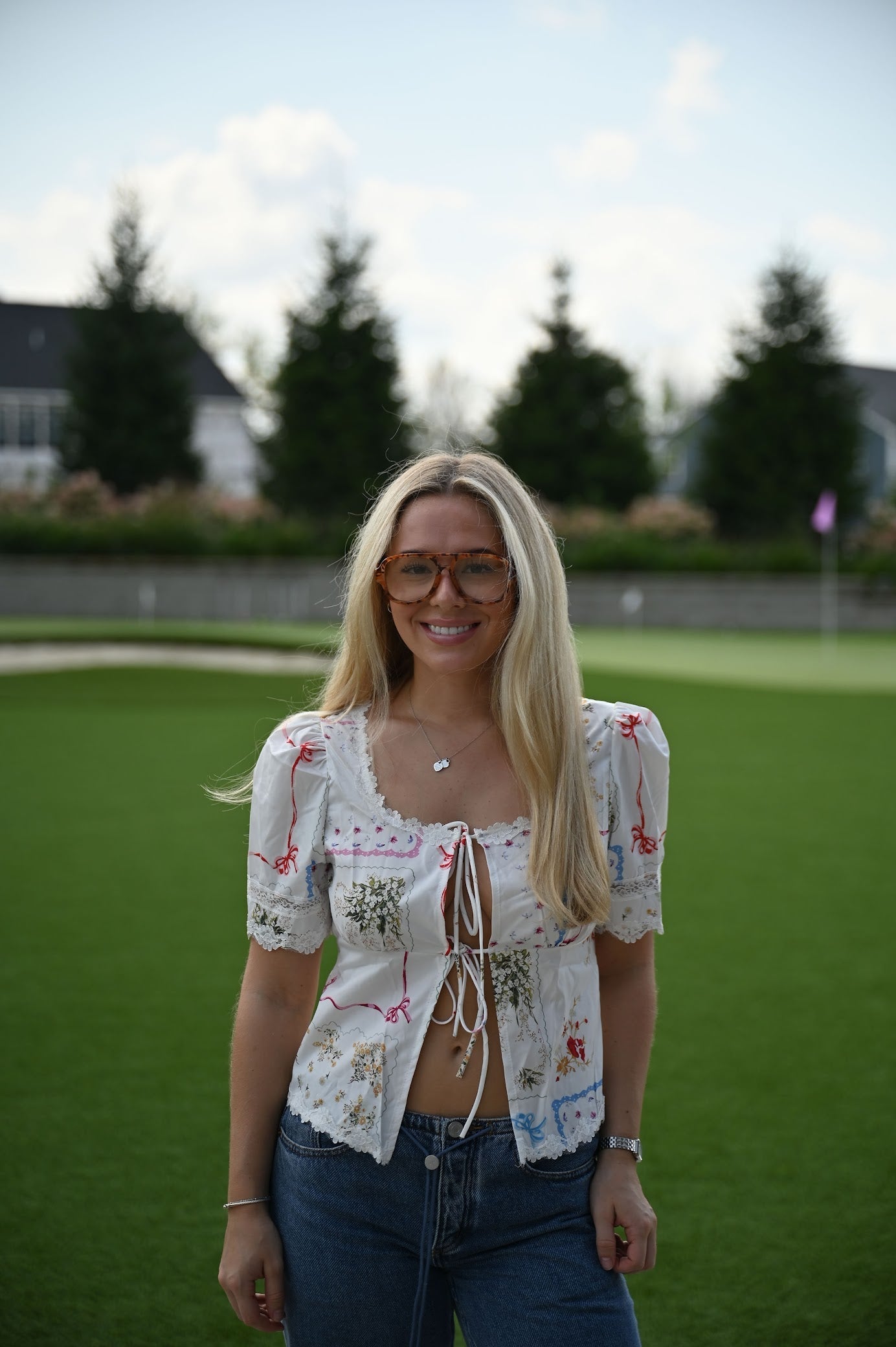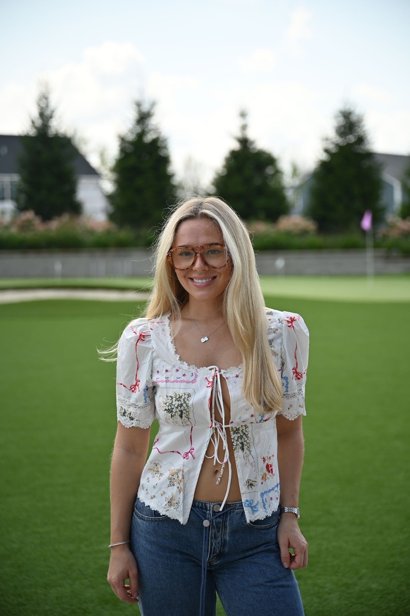 Introducing the Hydrangea Top, a fresh and fun addition to your wardrobe. This short sleeve top features a unique open middle design, adding a playful touch to any outfit. Stay stylish and cool with this quirky top.