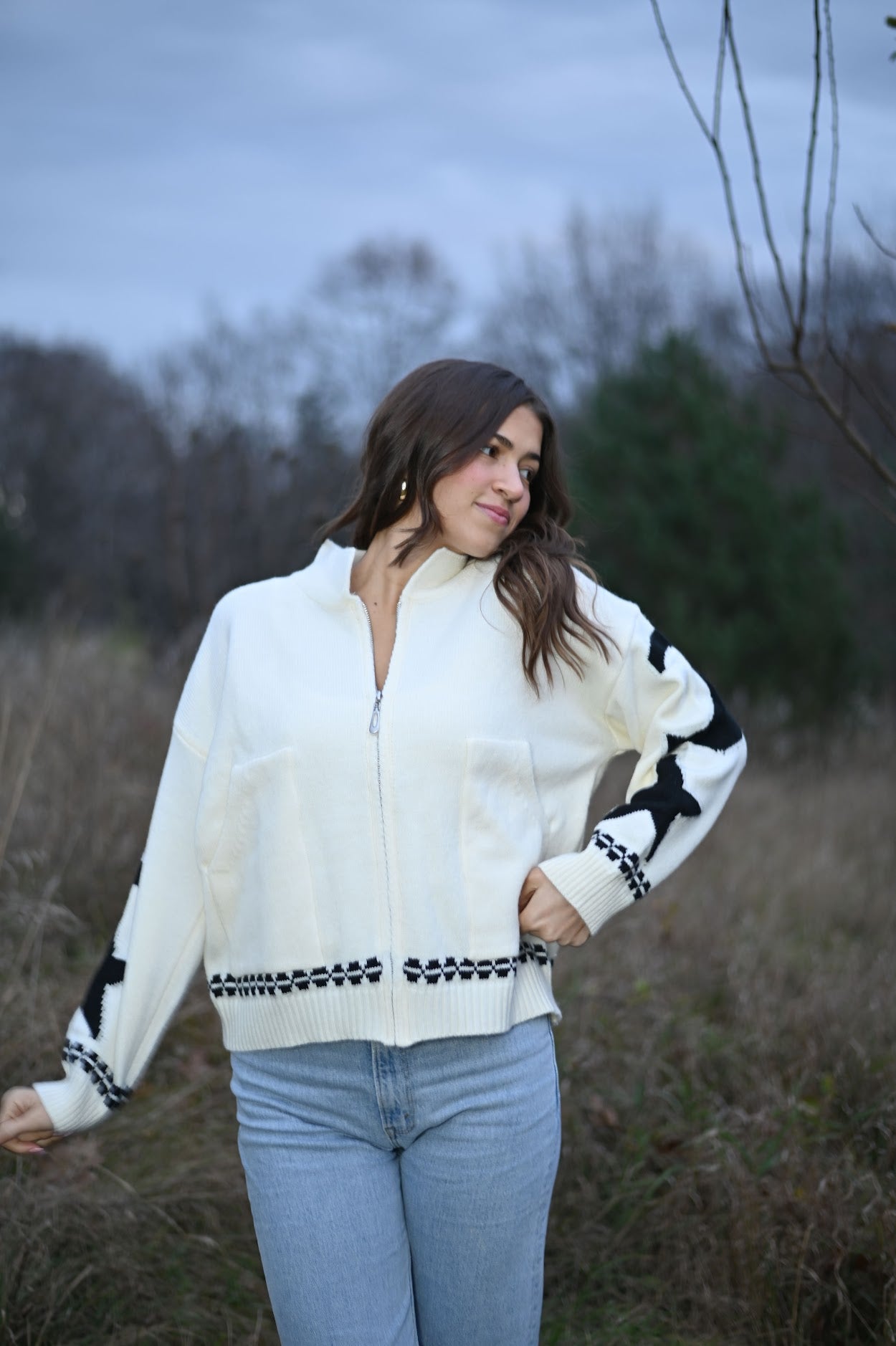 Get cozy with our Cozy Pattern Zip Sweater! The perfect combination of comfort and style. Stay warm and trendy with our unique pattern and convenient zip closure. A must-have for your winter wardrobe. (Limited stock, so hurry!)