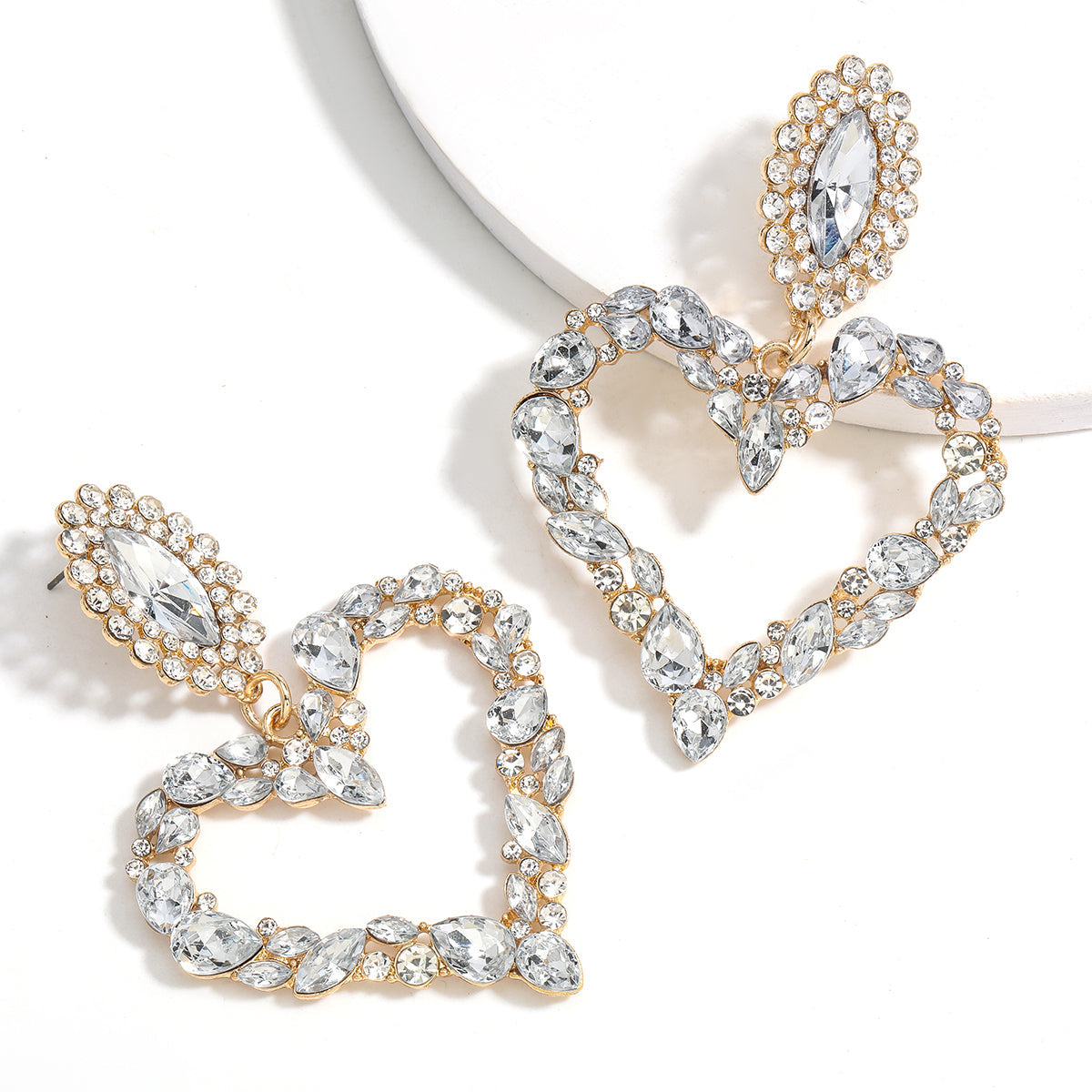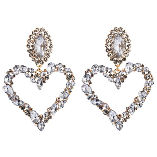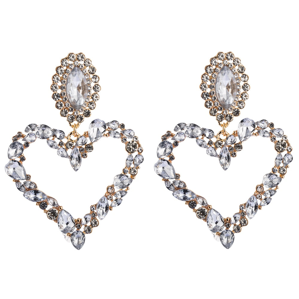 Heart Drop Dangle Earrings With Zinc Alloy Material And Rhinestone Decoration