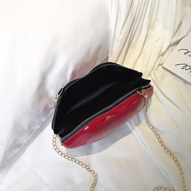 Lip Shape Sling Bag with Solid Color, Zipper Closure, and PVC Material