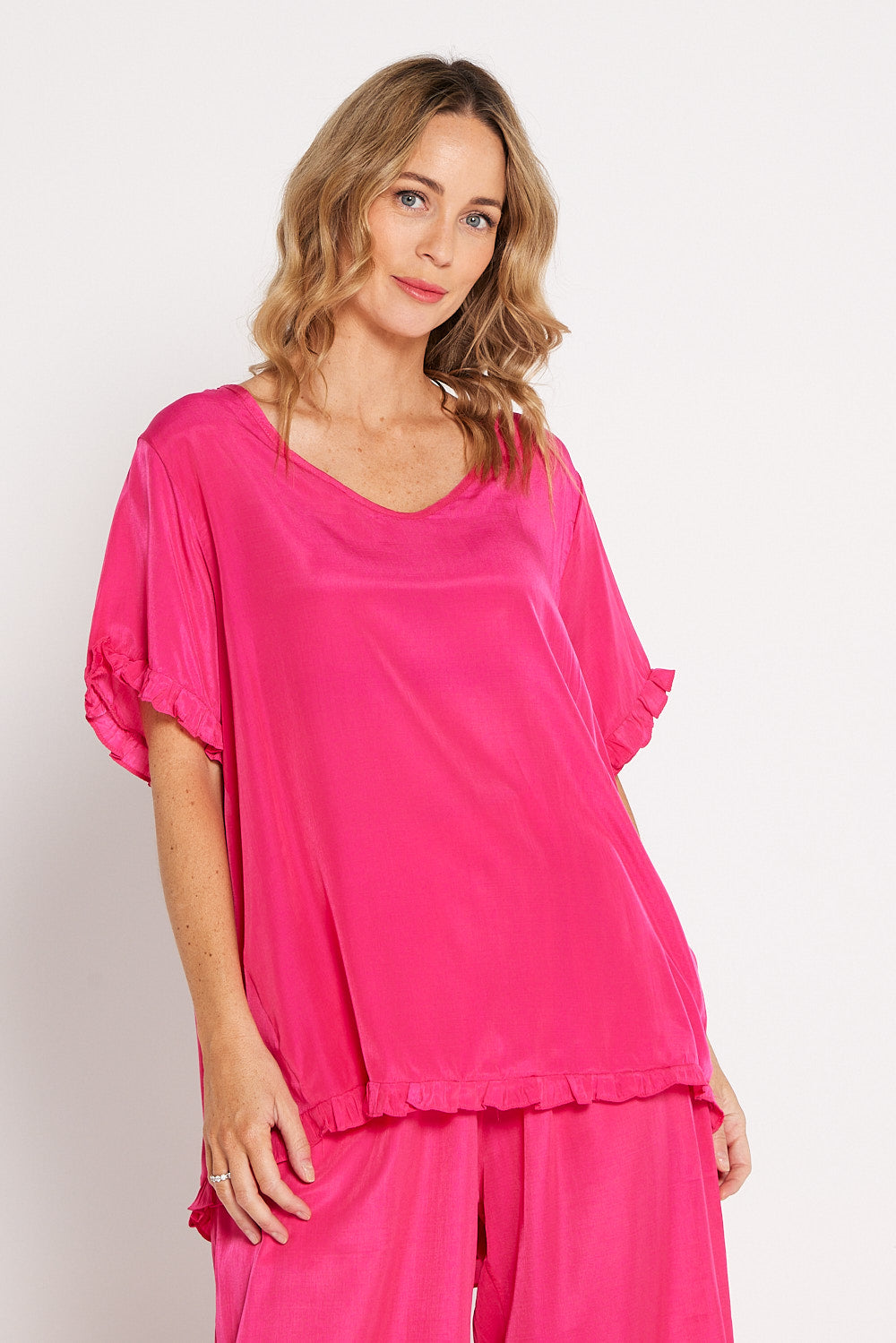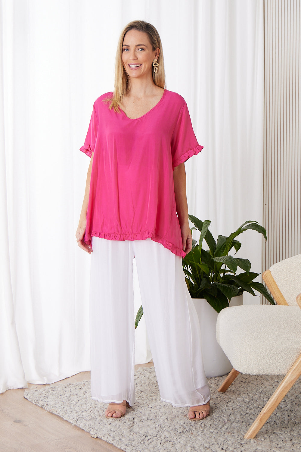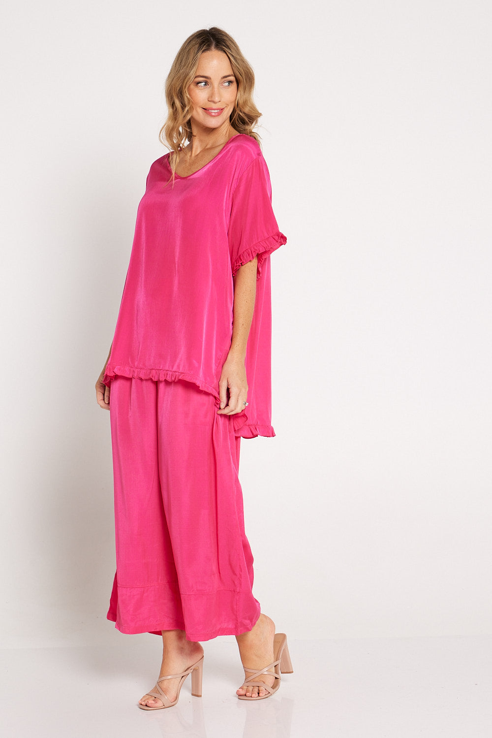 This silhouette is always a popular one, and Cotton Village has just created their own take on it. In a silky hot pink, we love this one paired with the matching pants for a statement special occasion look.