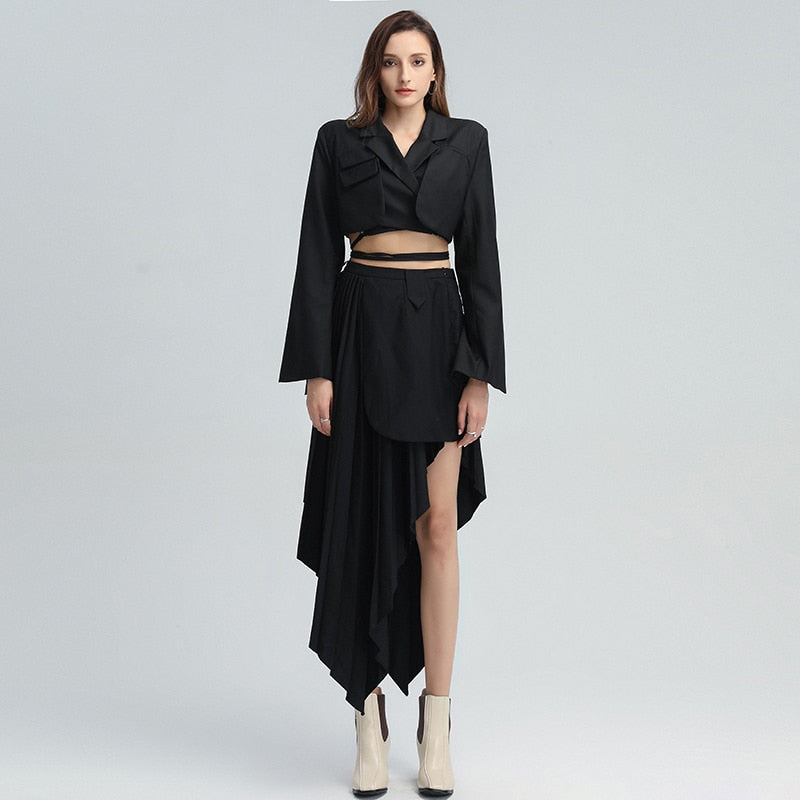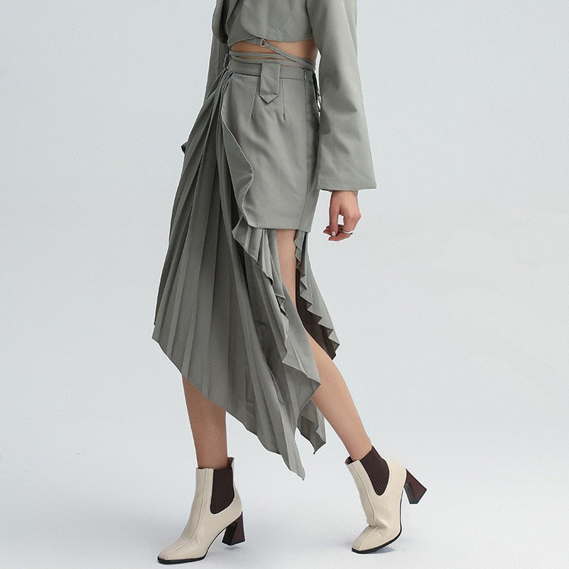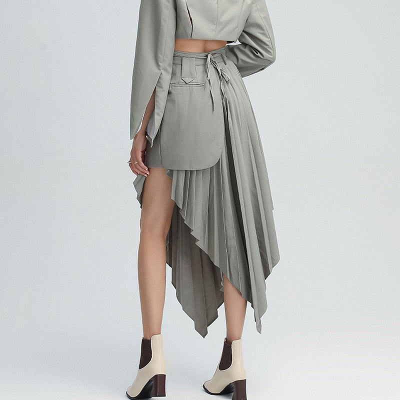 Asymmetric A-Line Pleated Skirt with Cotton Polyester Material