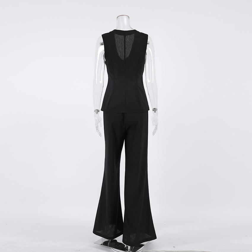 The perfect summertime outfit is here! This set includes a sleeveless tank top and wide leg pants with an elastic waist closure. The tank top is solid and v-neck, perfect for a breezy summer day. The pants are made of cotton and are wide legs. This set is perfect for a summer BBQ or family reunion.