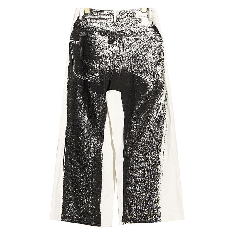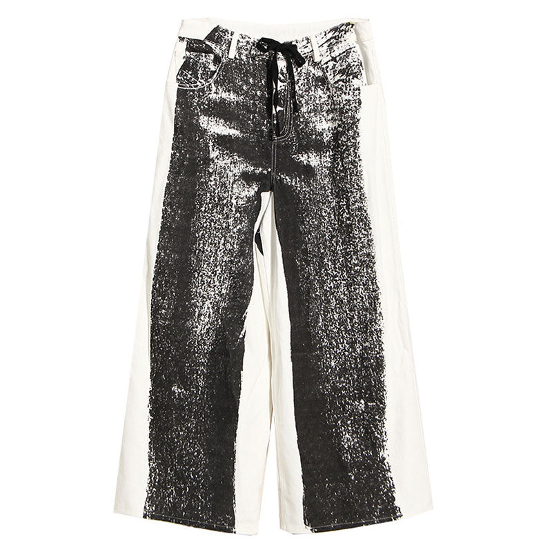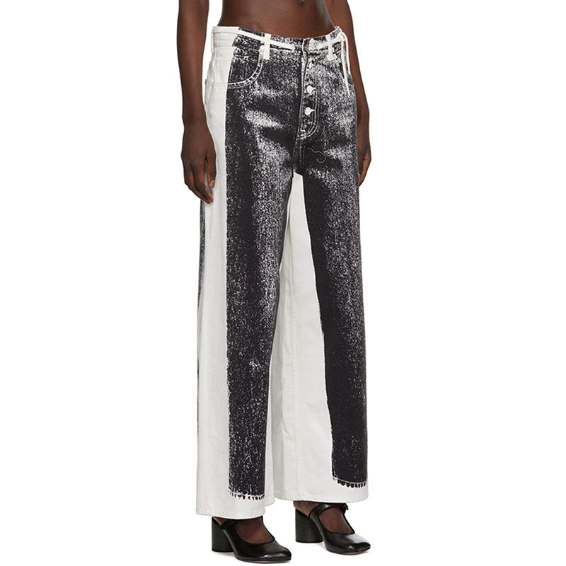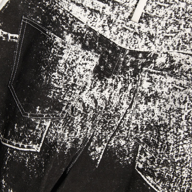 This pair is definitely the uniquest piece that you can only see in our designer collection. These jeans are the testament to the brand's subversive aesthetic and imaginative approach. Featuring a high-rise fit with a zip-fly fastening and a drawstring detail to cinch the waist. the designer jeans' conceptual style showcases a wide-leg silhouette with a slightly scaled-down jeans print to the front and rear which is sure to cause a buzz. The five pocket style makes this piece classic and functional to your everyday styling. Pro tip: match it with a fitted sheer top and fun flats. It's really worth the hype.