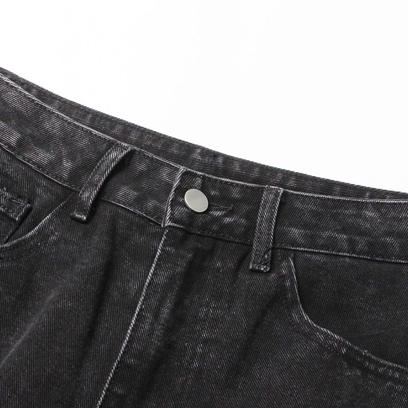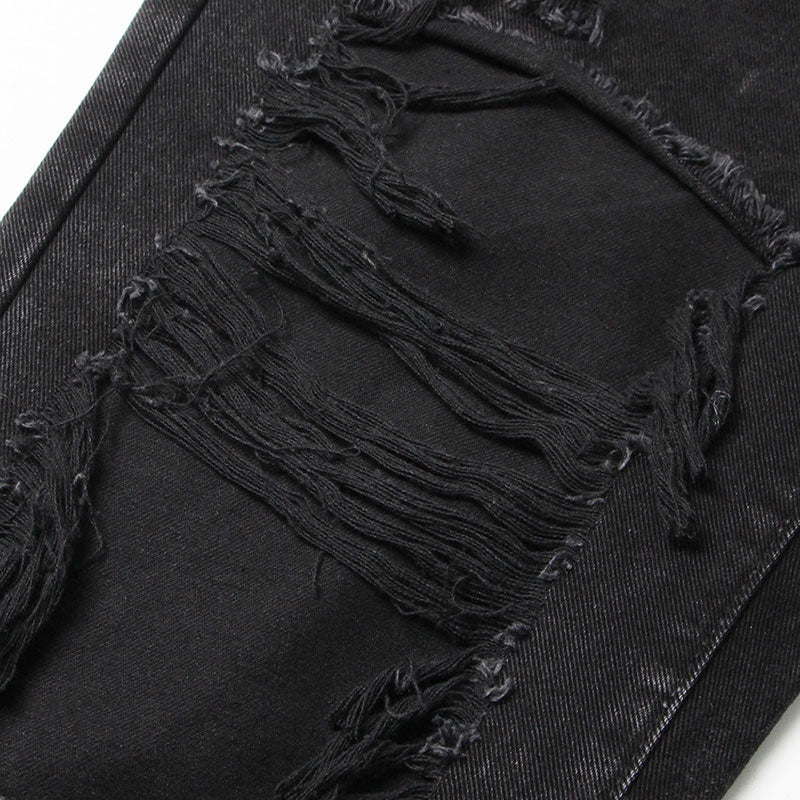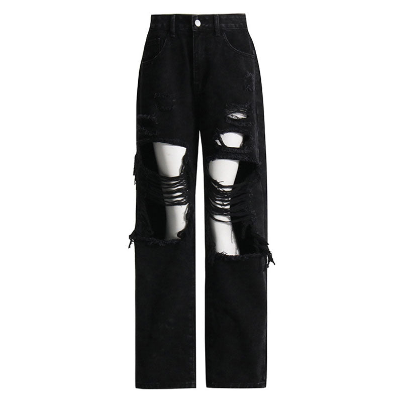 Cool Dark Wash Frayed CutOut High Waist Straight Leg Denim Jeans