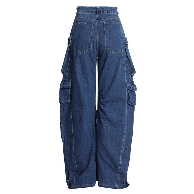 Cool Multiple Pocket Detail High Waist Wide Leg Cargo Jeans