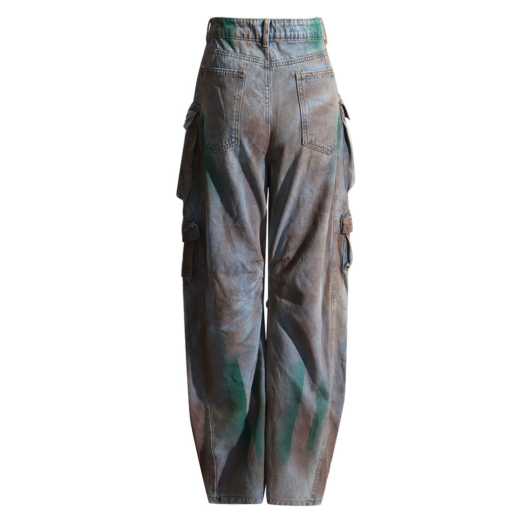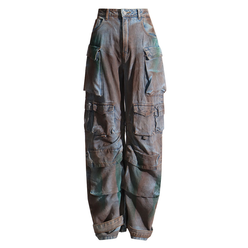 Cutting Edge Camouflage Washed High Waist Wide Leg Oversized Cargo Jeans