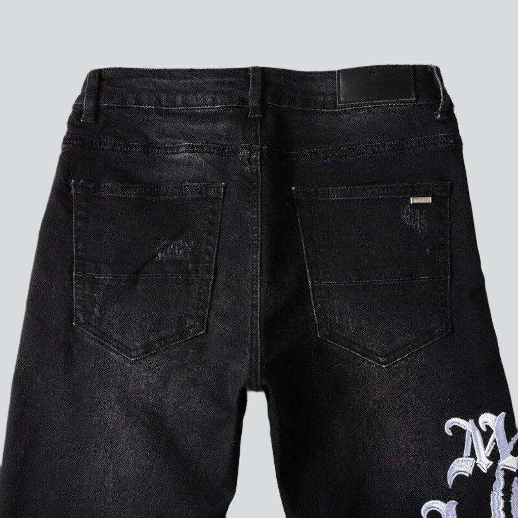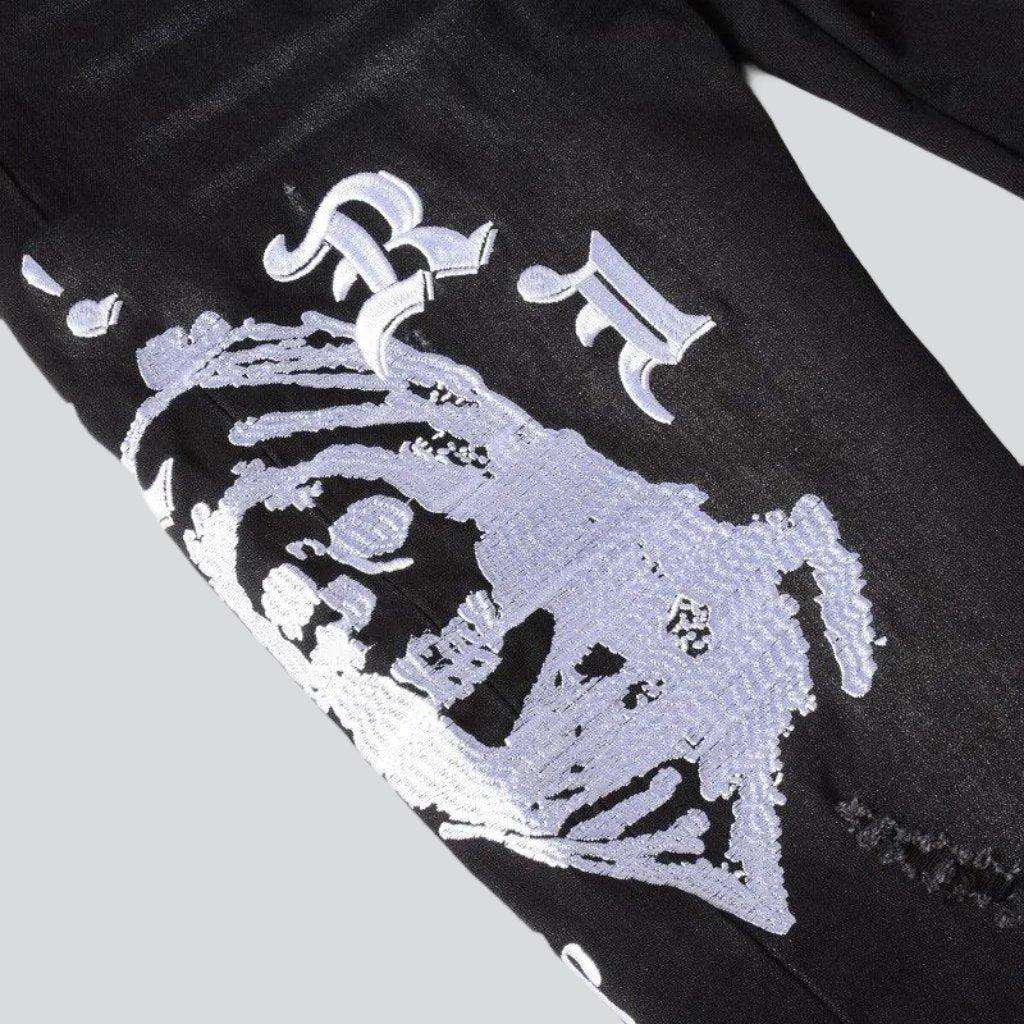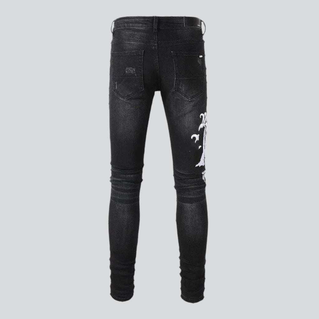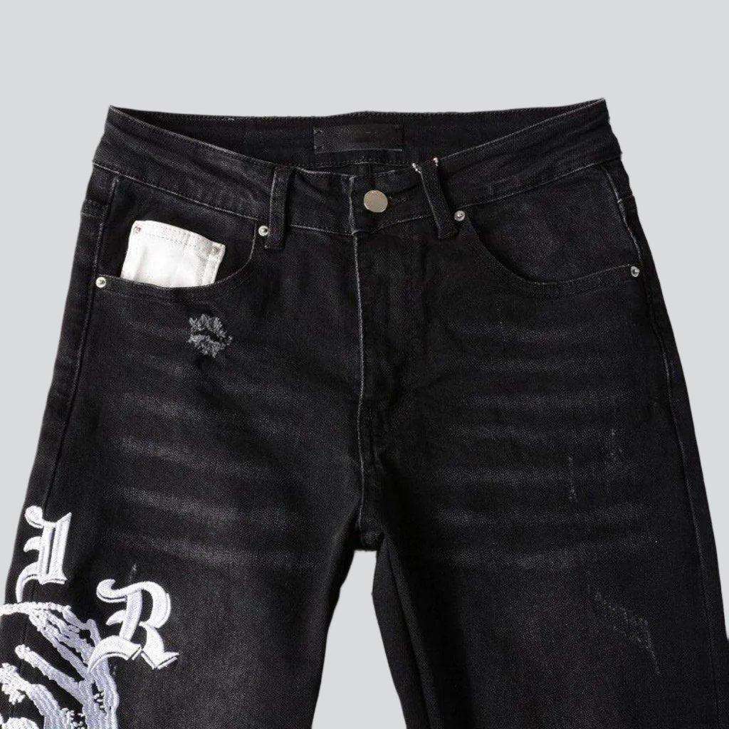 Introducing our 2023 Spring-Summer Collection's street style. the perfect pick for the modern fashionista white embroidery black skinny jeans! Meticulously crafted to be a timeless masterpiece. it promises to add a vibrant edge to your look.