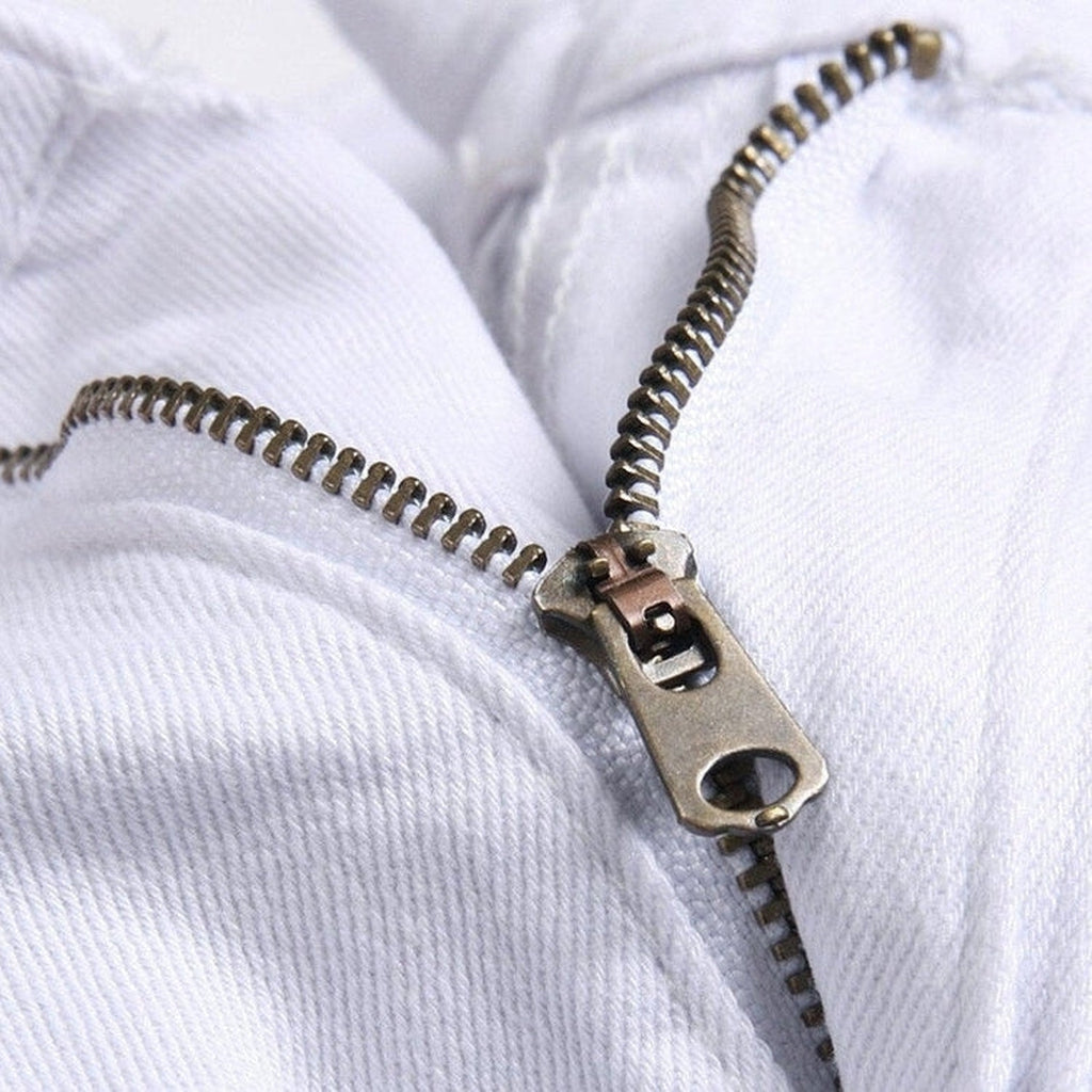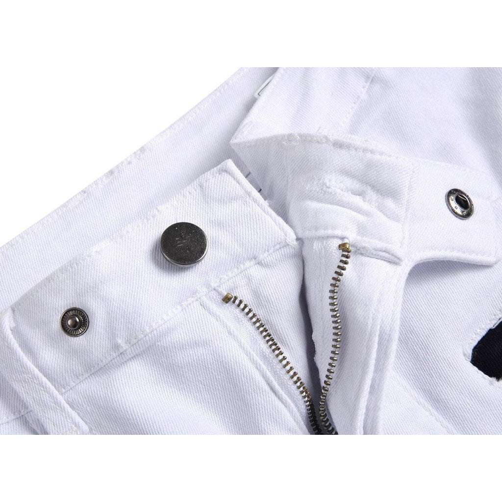 Be the star of the show with these stylish white jeans from our 2023 Summer Collection. With their unique street trend and thin-fitting design. you'll be sure to make a statement wherever you go! Whether you're attending a special event or just having a informal day out. you'll always look and feel your best.