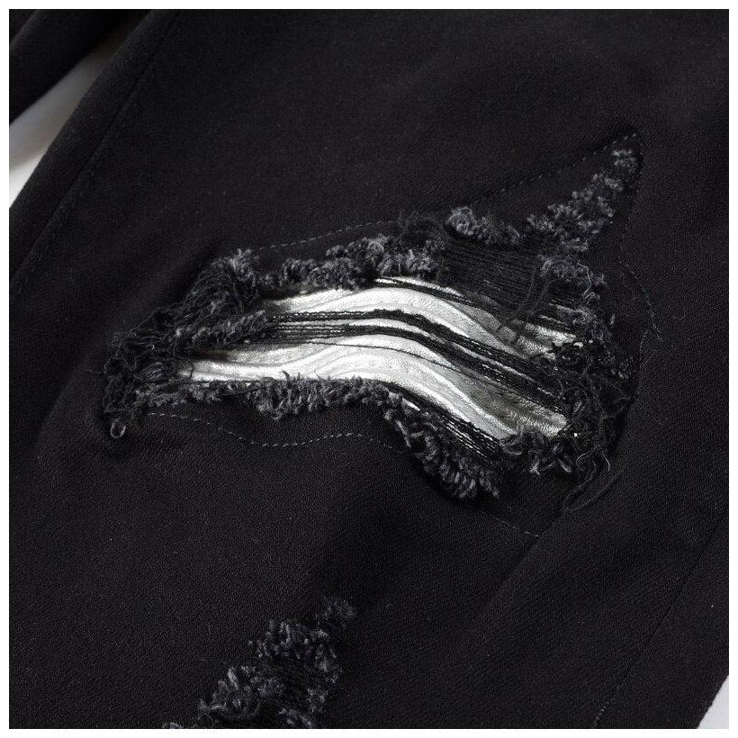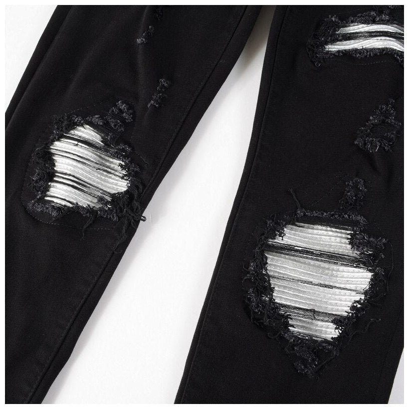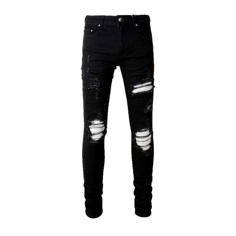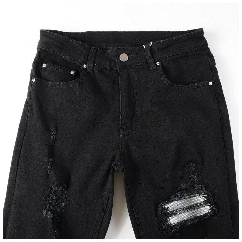 Introducing the 2023 Autumn Collection White Patch Ripped Biker Jeans ââ‚?a unique combination of laid-back trend and fashion sophistication!