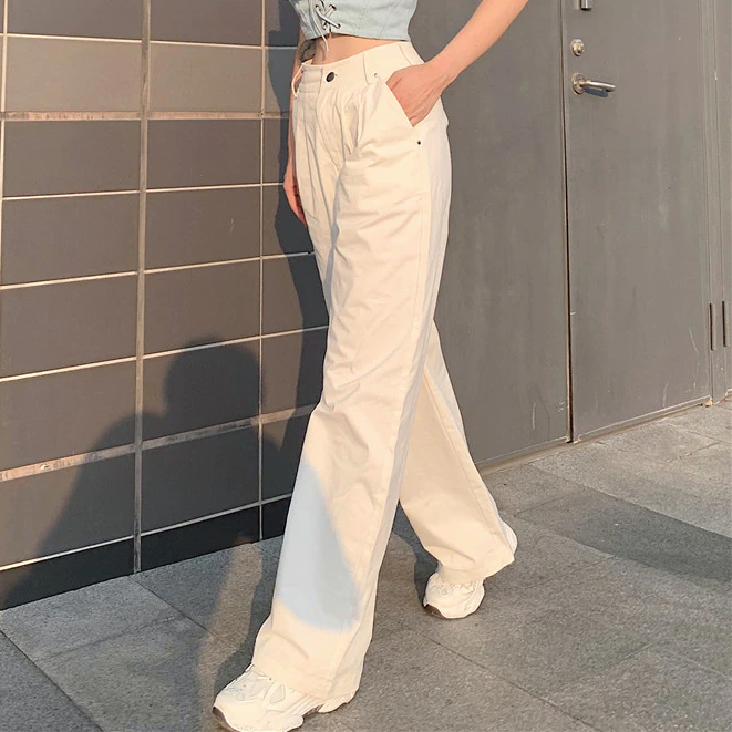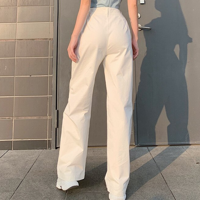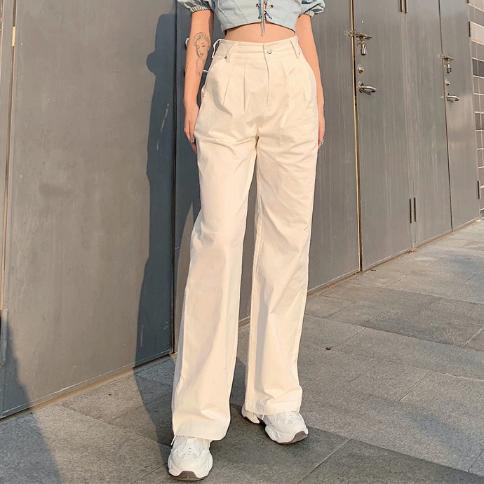 Light Washed Cotton Spandex Straight Jeans with High Waist, Regular Fit and Side Pockets