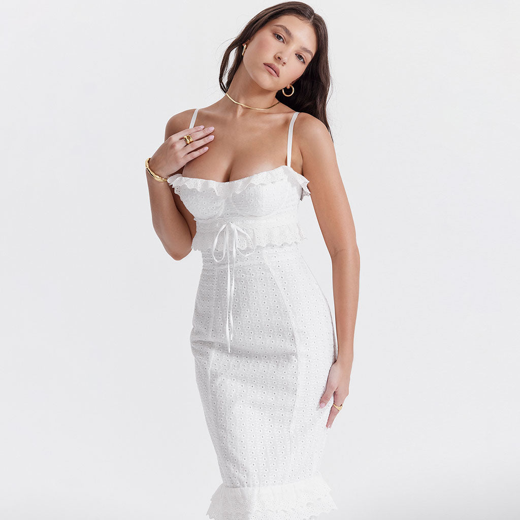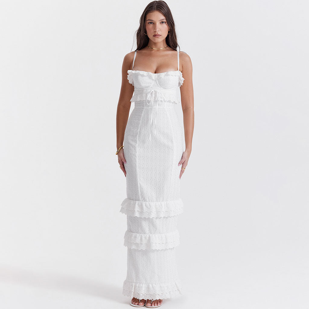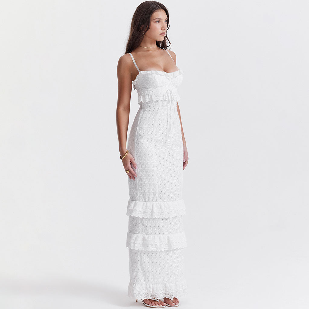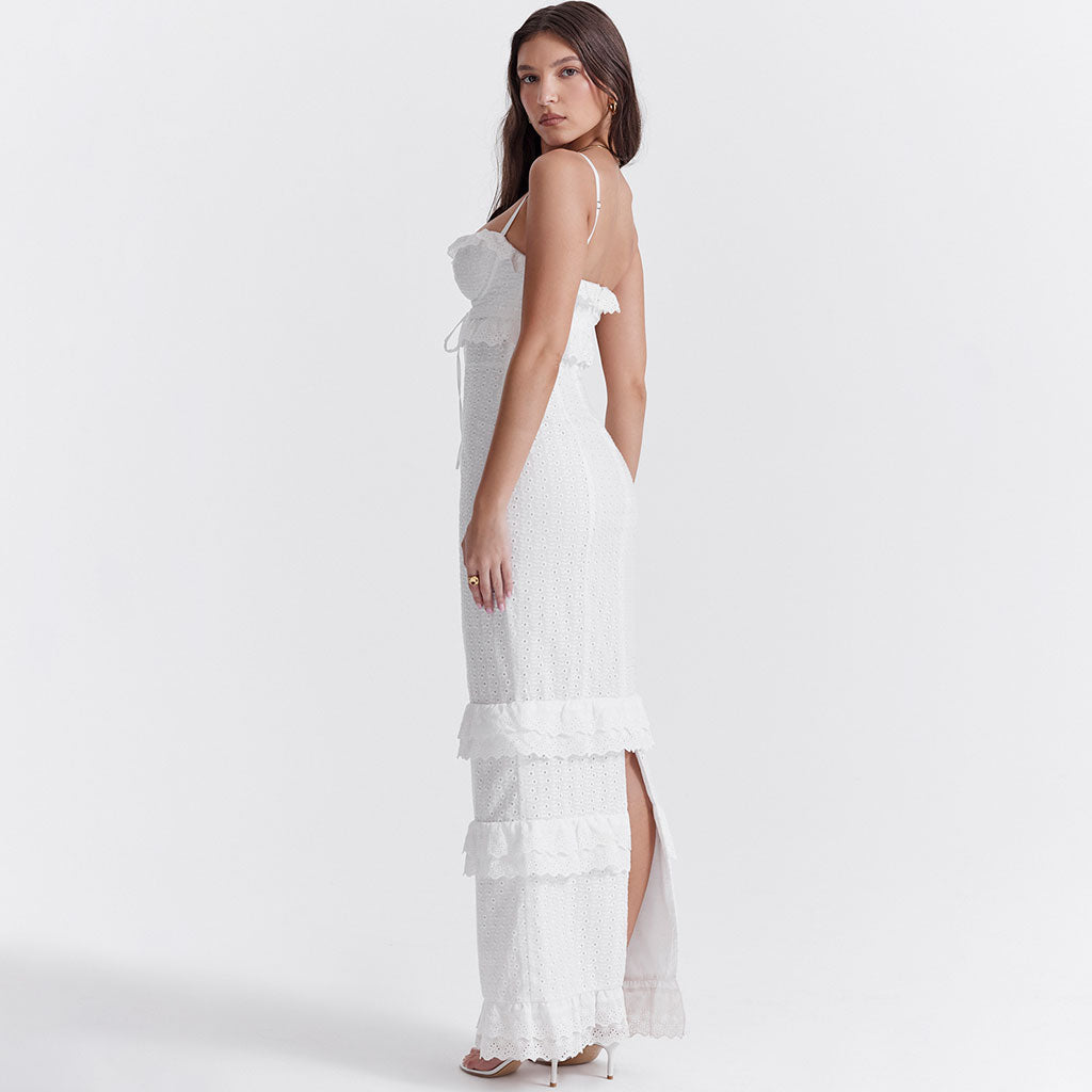 Cute Layered Ruffle Bustier Cami Back Split Broderie Anglaise Maxi Dress