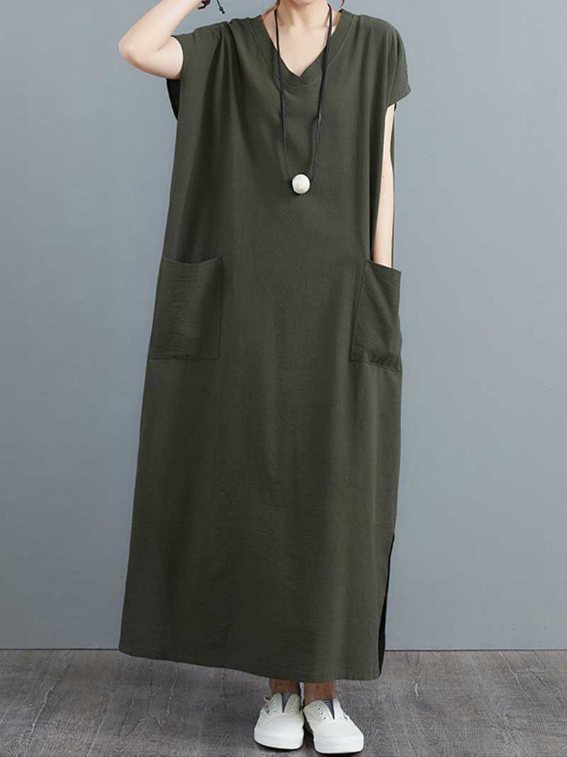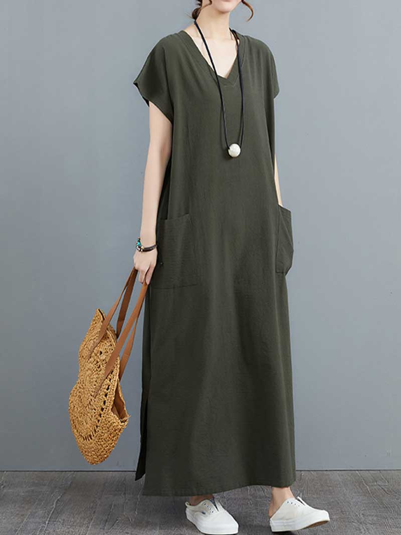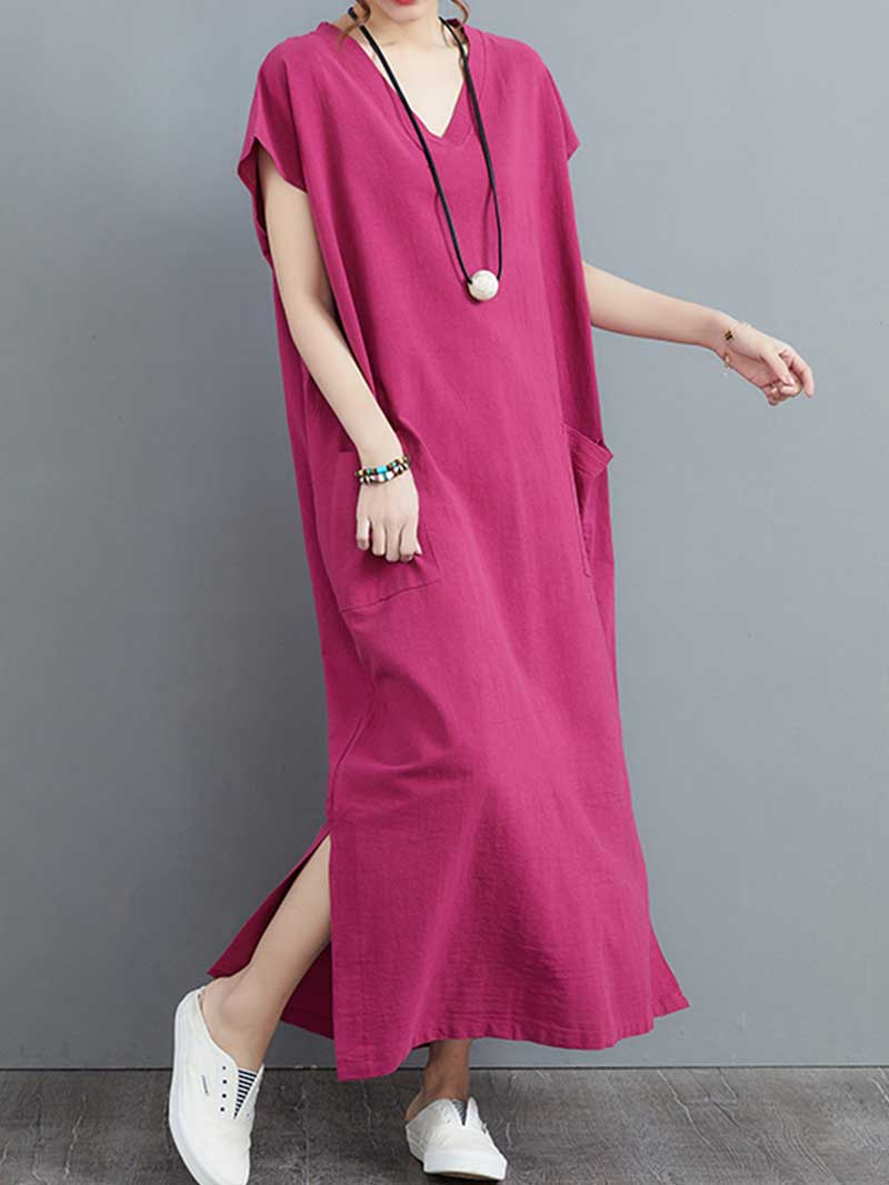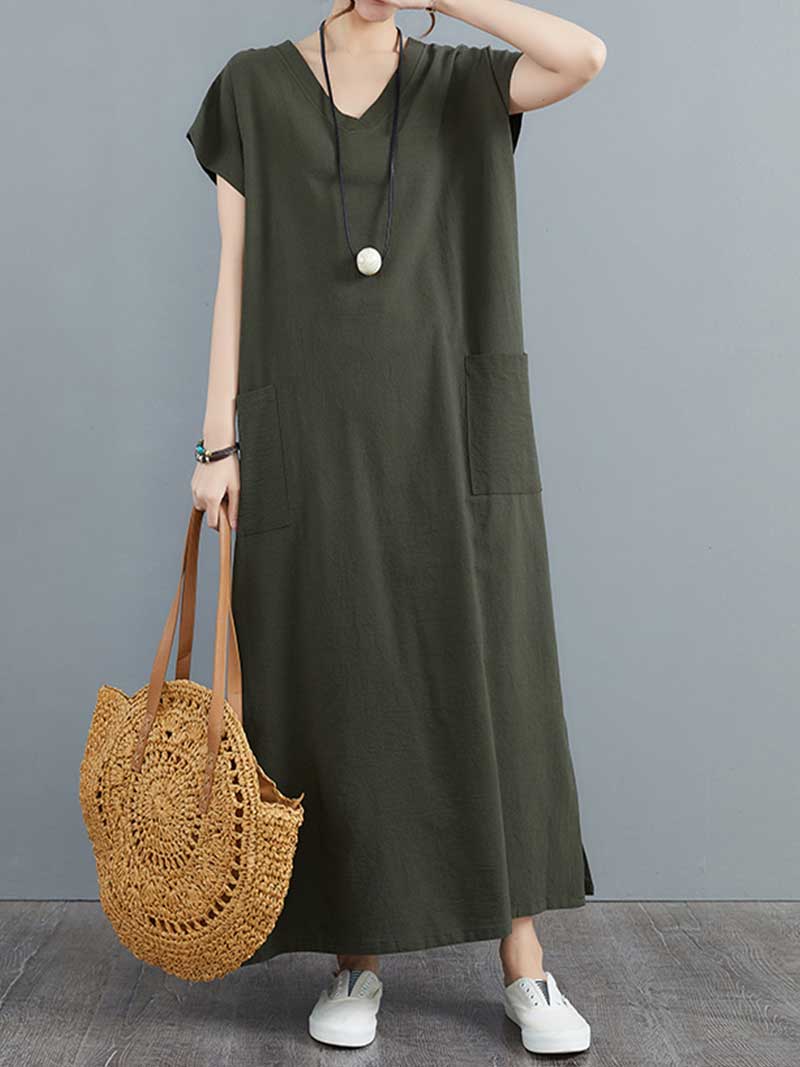 Look no further than our Hemp Material With Plain Short Sleeves A-Line Dress! Made from soft. breathable hemp fabric. this dress is perfect for hot summer days. The loose fit and short sleeves keep you cool and comfortable. while the V-neck and A-line silhouette flatters your figure. Plus. the vibrant colors are sure to turn heads! Whether you're running errands or attending a summer party. our Hemp Material With Plain Short Sleeves A-Line Dress is a perfect choice.