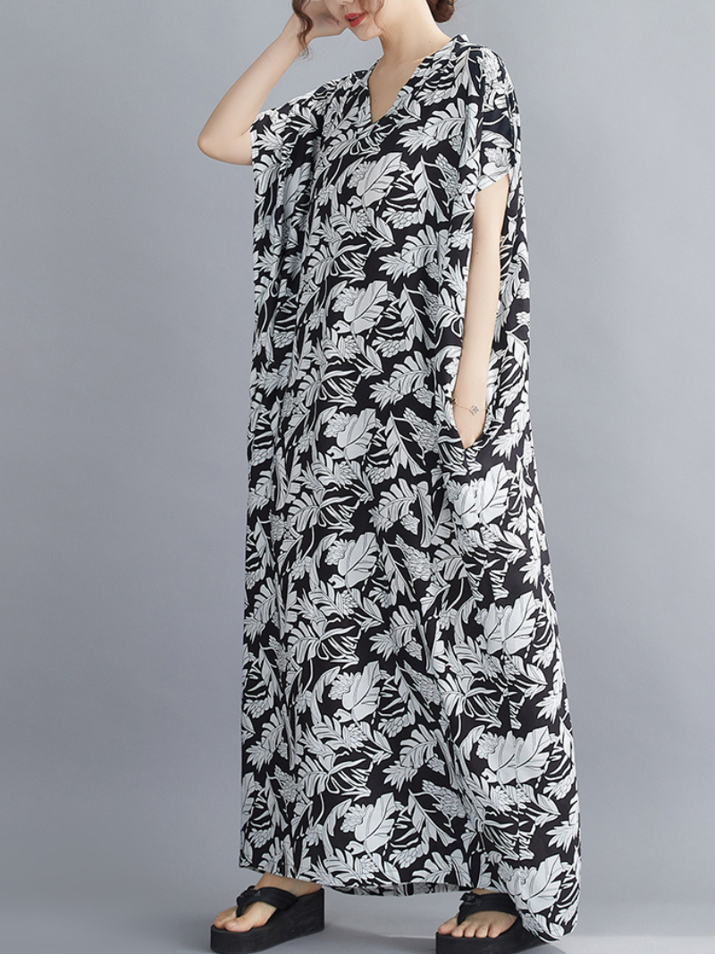Holding My Hand V-neck Short Sleeves Kaftan Dress