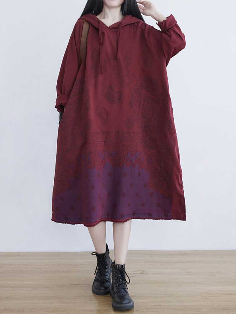 Let your love for unique print style and comfy fabric speak up through this piece. featuring a hooded design with a rib-knit band on the cuffs and hem. Wear it with your go-to wedges to complete the look. The Long Live Printed Hooded Midi Dress offers a loose. space-dyed fabric with a relaxed silhouette. Perfect for wearing to music festivals or any day you want to be the headliner. this dress's long sleeves and hood let you express yourself from both inside and outside its soft construction.