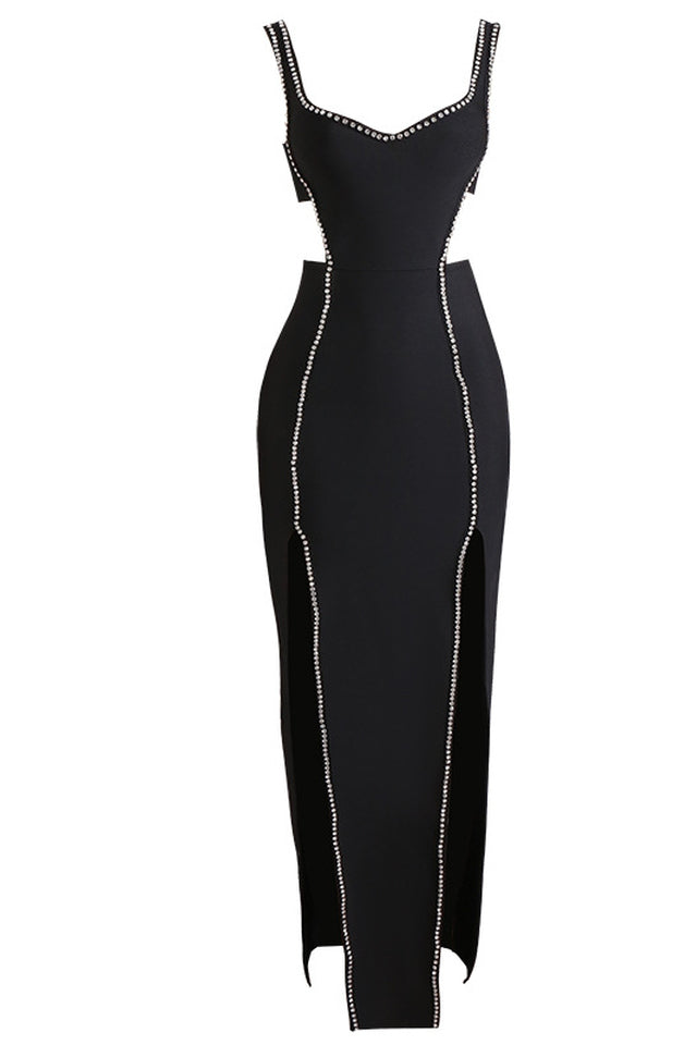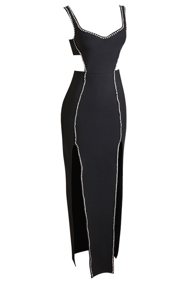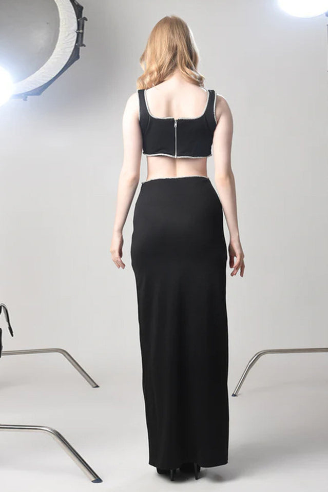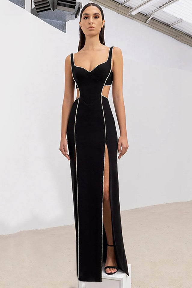 Look stunning in the elegant and sophisticated Martha Black High Slits Dress. Crafted from high-quality. black fabric. the dress features high slits at the both sides and a flattering cut out from front to back - perfect for those occasions that demand a refined yet alluring outfit. Show off your sense of style and embody timeless beauty in this unique and pretty dress.