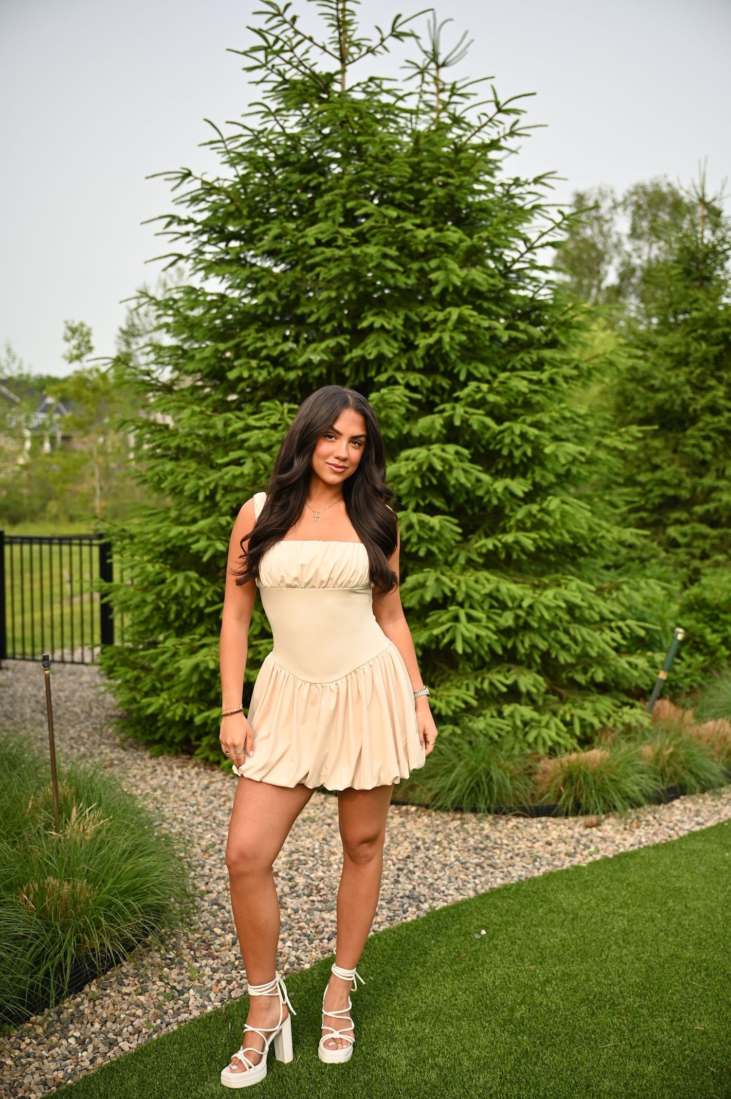 Brighten your day with the Meet Me Dress, a playful yellow balloon mini dress that adds a fun pop of color to any occasion. Its flirty silhouette and cheerful hue make it perfect for sunny outings or lively gatherings. Lightweight and easy to wear, this dress brings a joyful vibe wherever you go.