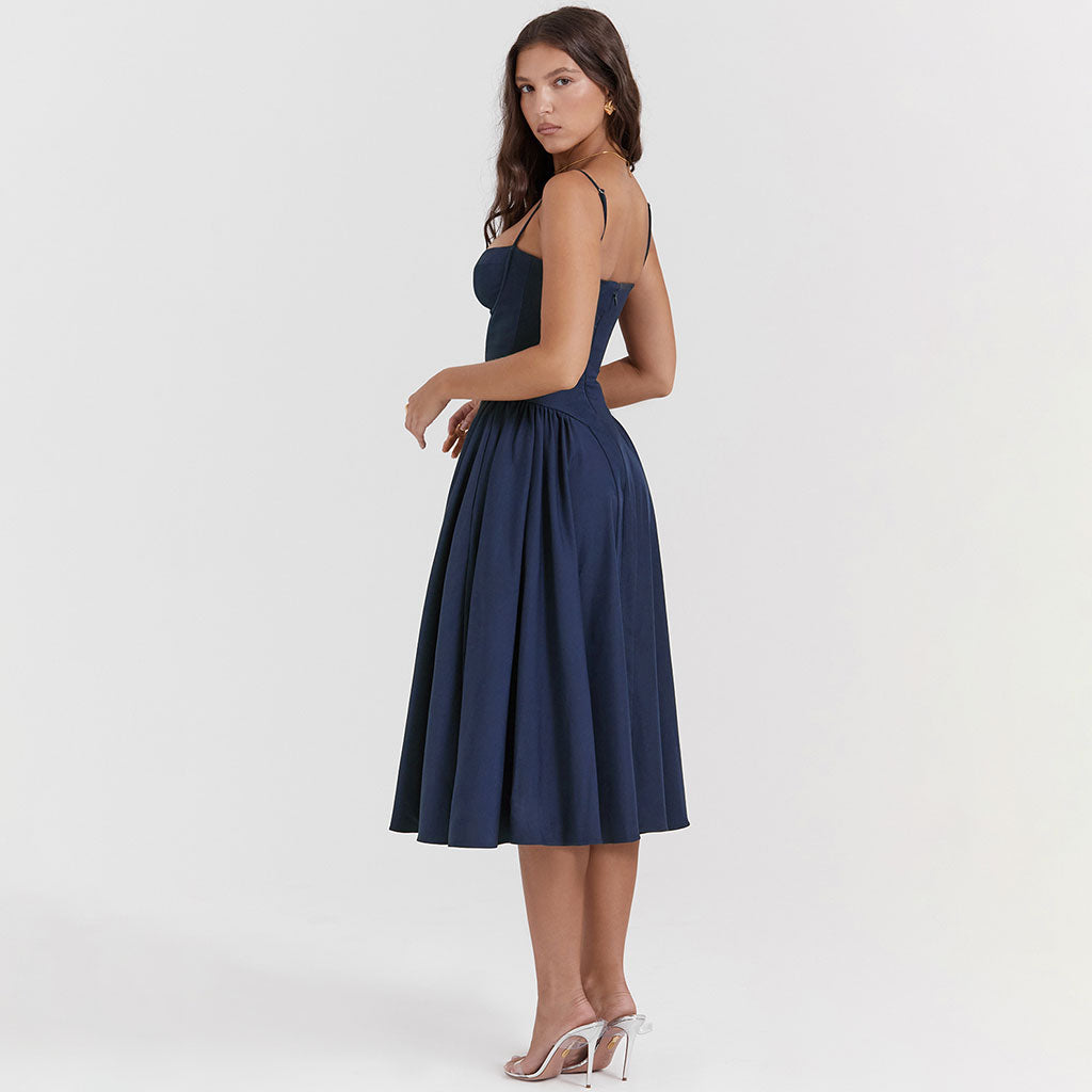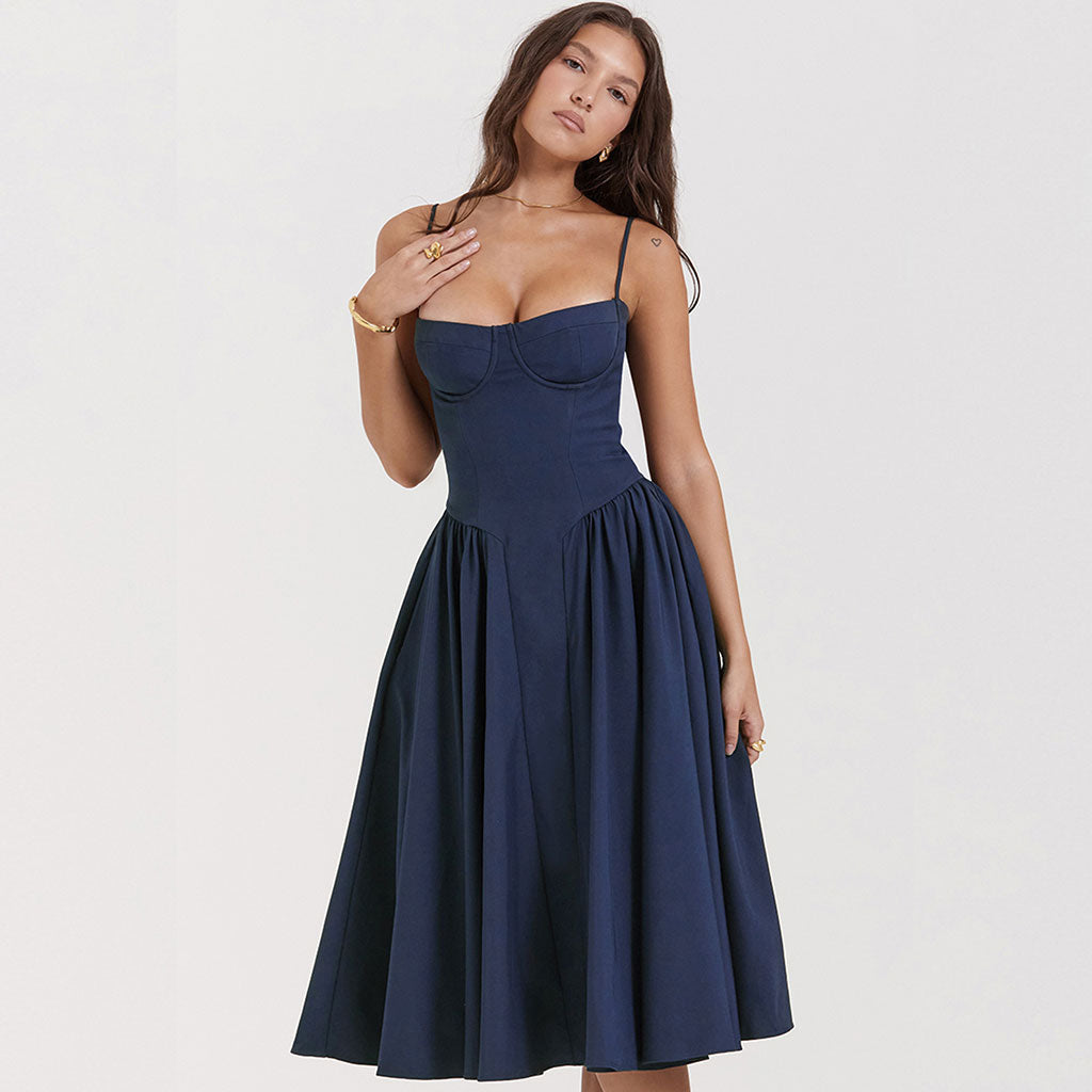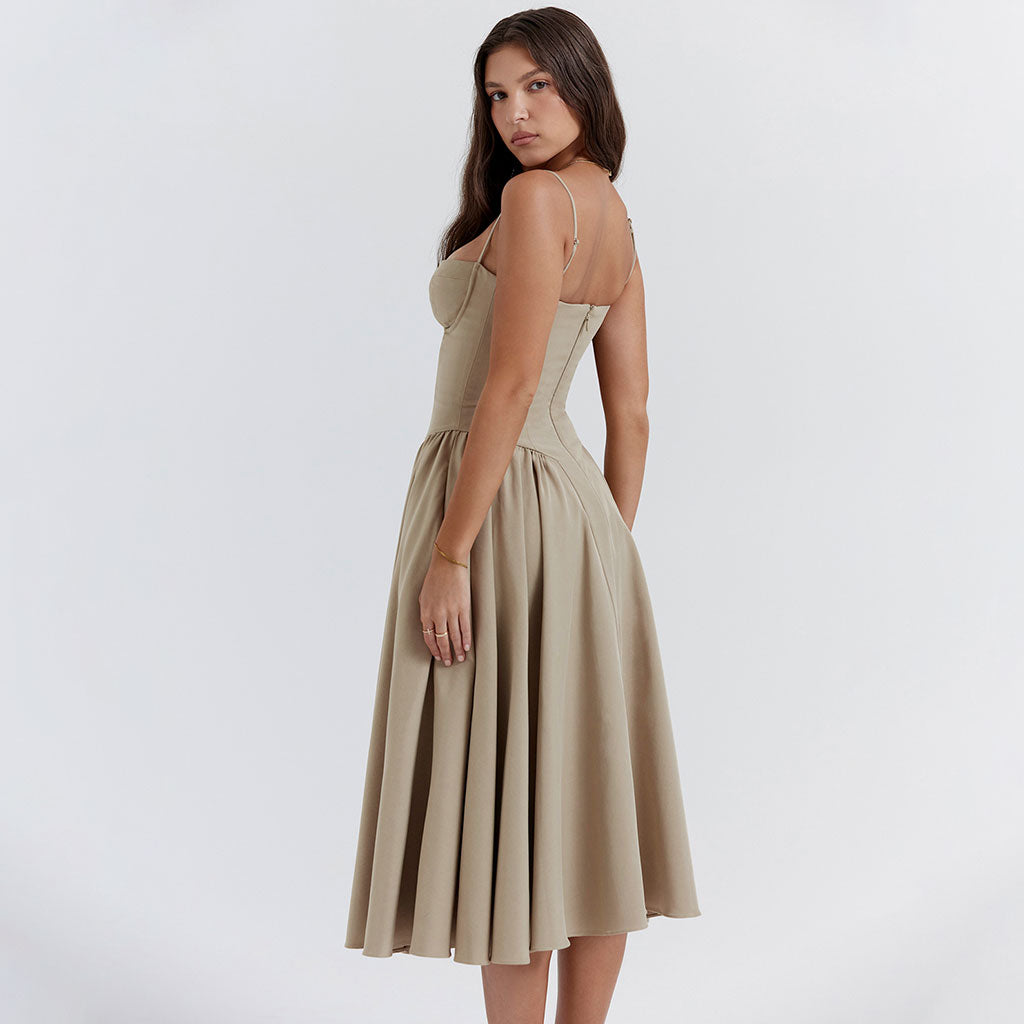 Minimalist Solid Sweetheart Neck Drop Waist Fit and Flare Midi Cami SunDress