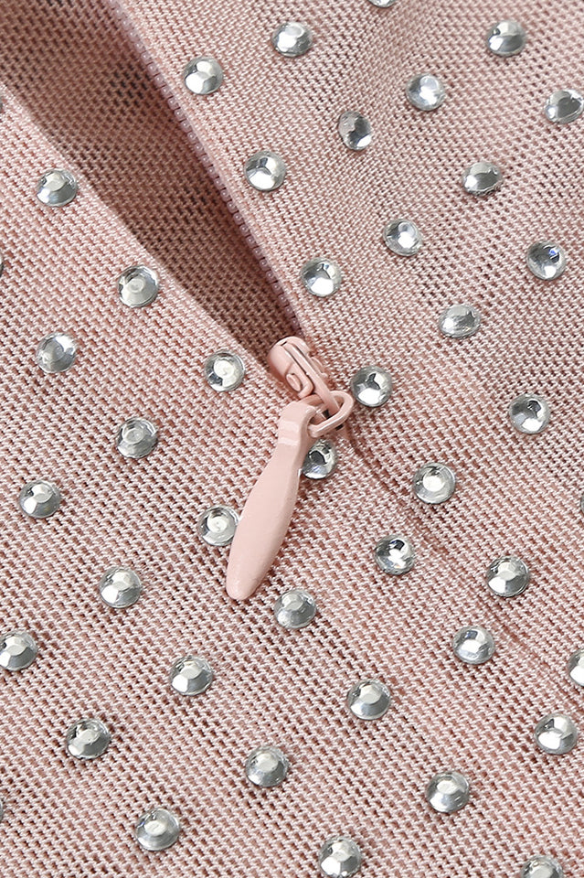 This glittering mini is party perfection, made in our rhinestone mesh fabric that hugs your body for the silhouette of dreams. Complete with a sexy, halter plunge neck, wear yours with mule heels and a sleek, high knot.